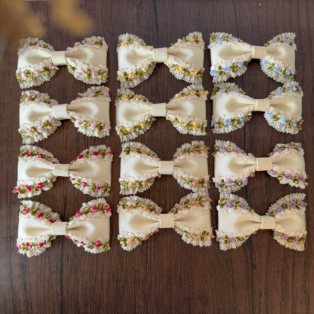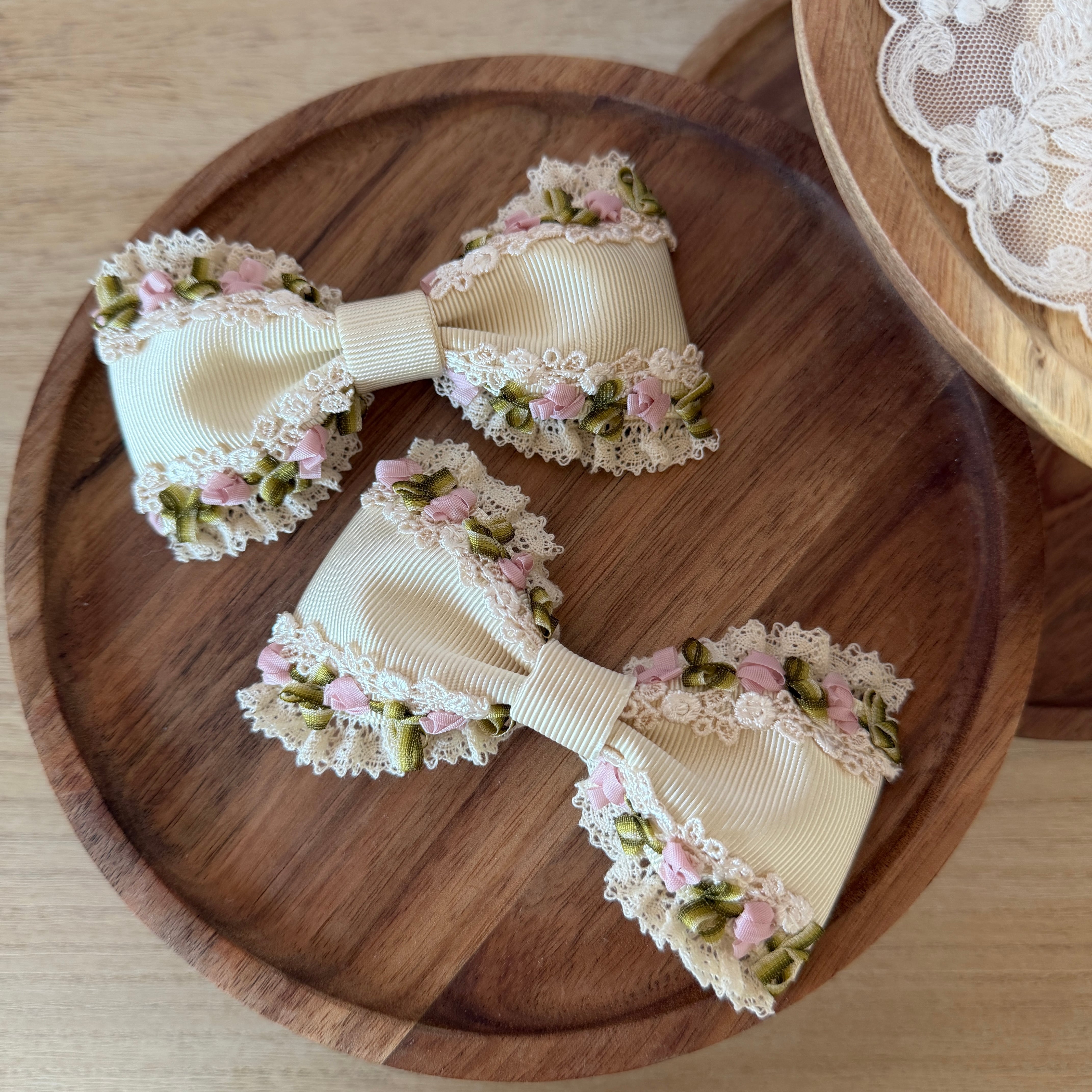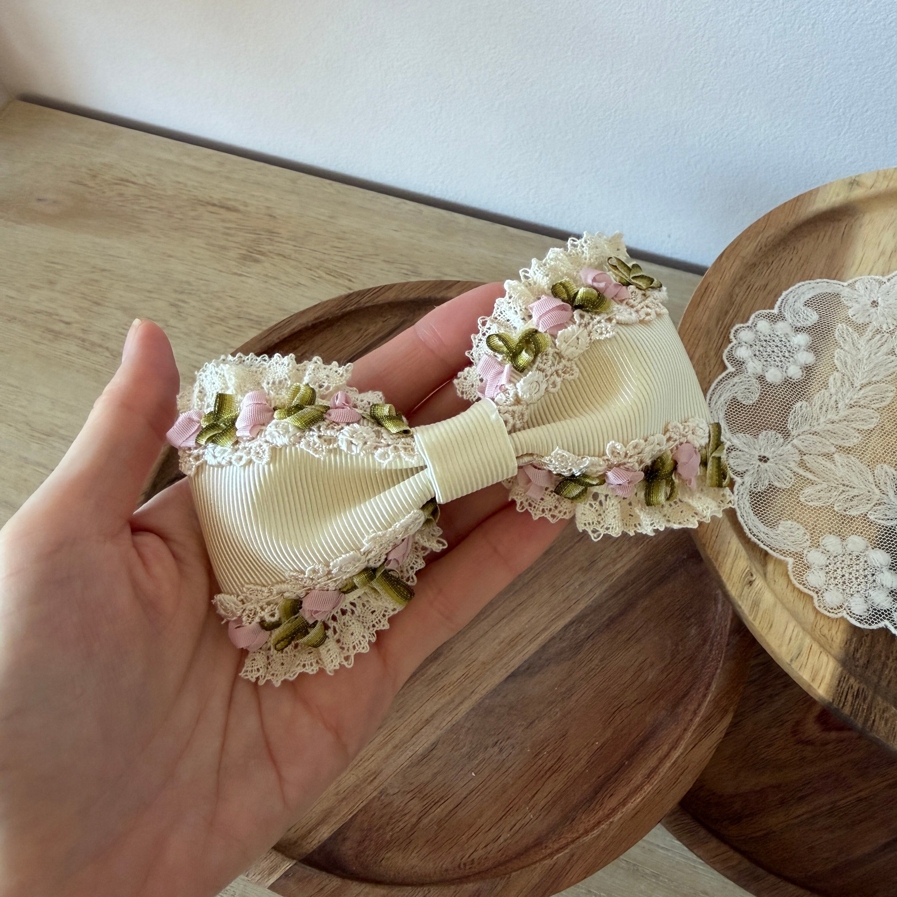 作品に使われているリボンや糸をひっかけないよう十分ご注意くださいませ。