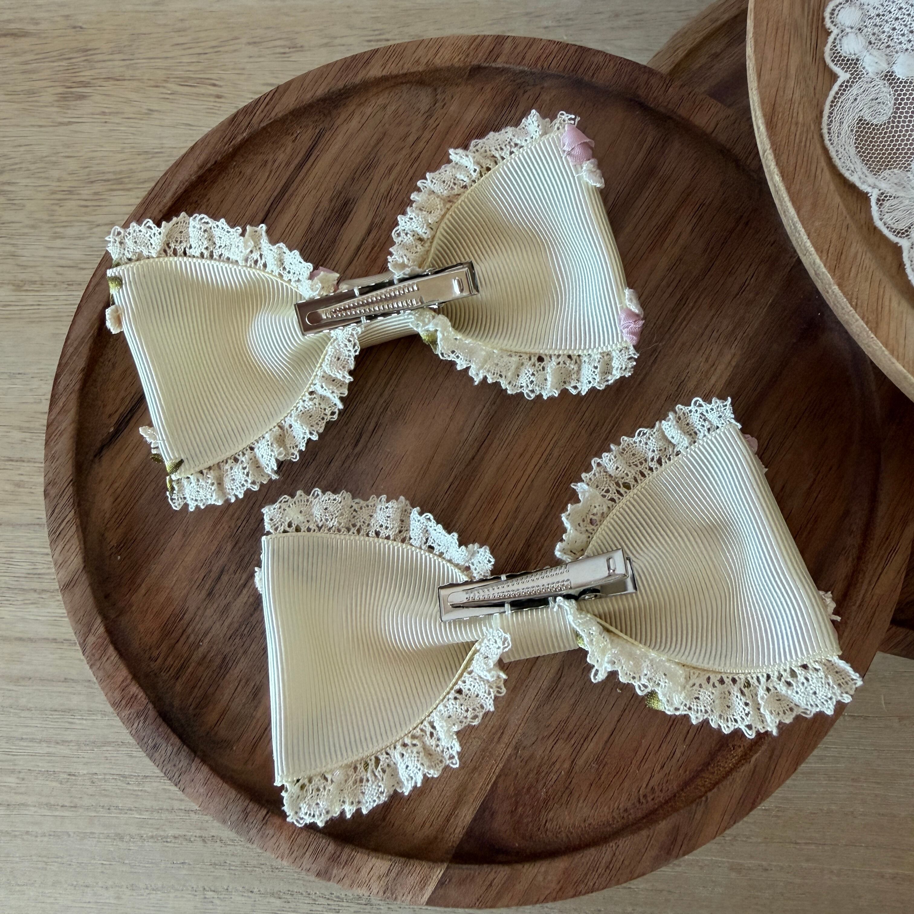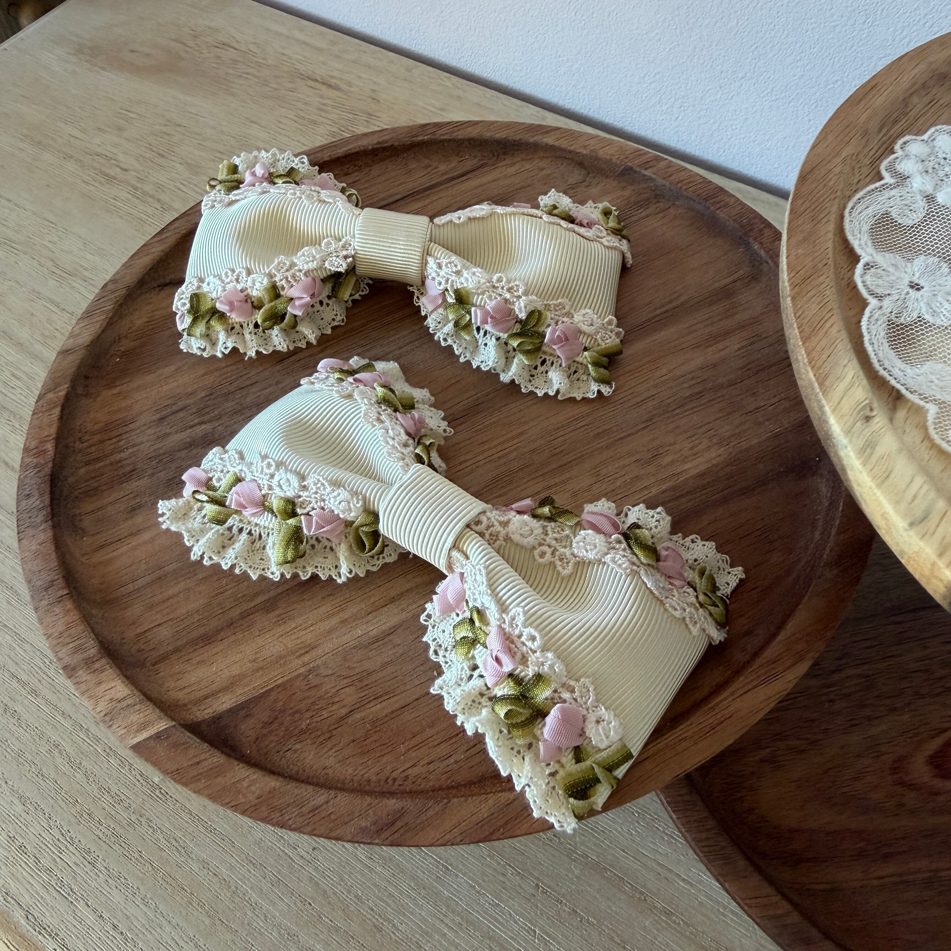 ツインテールやハーフアップのサイドクリップとして、また、シンプルなブラウスやワンピースの襟元に添えても素敵です。