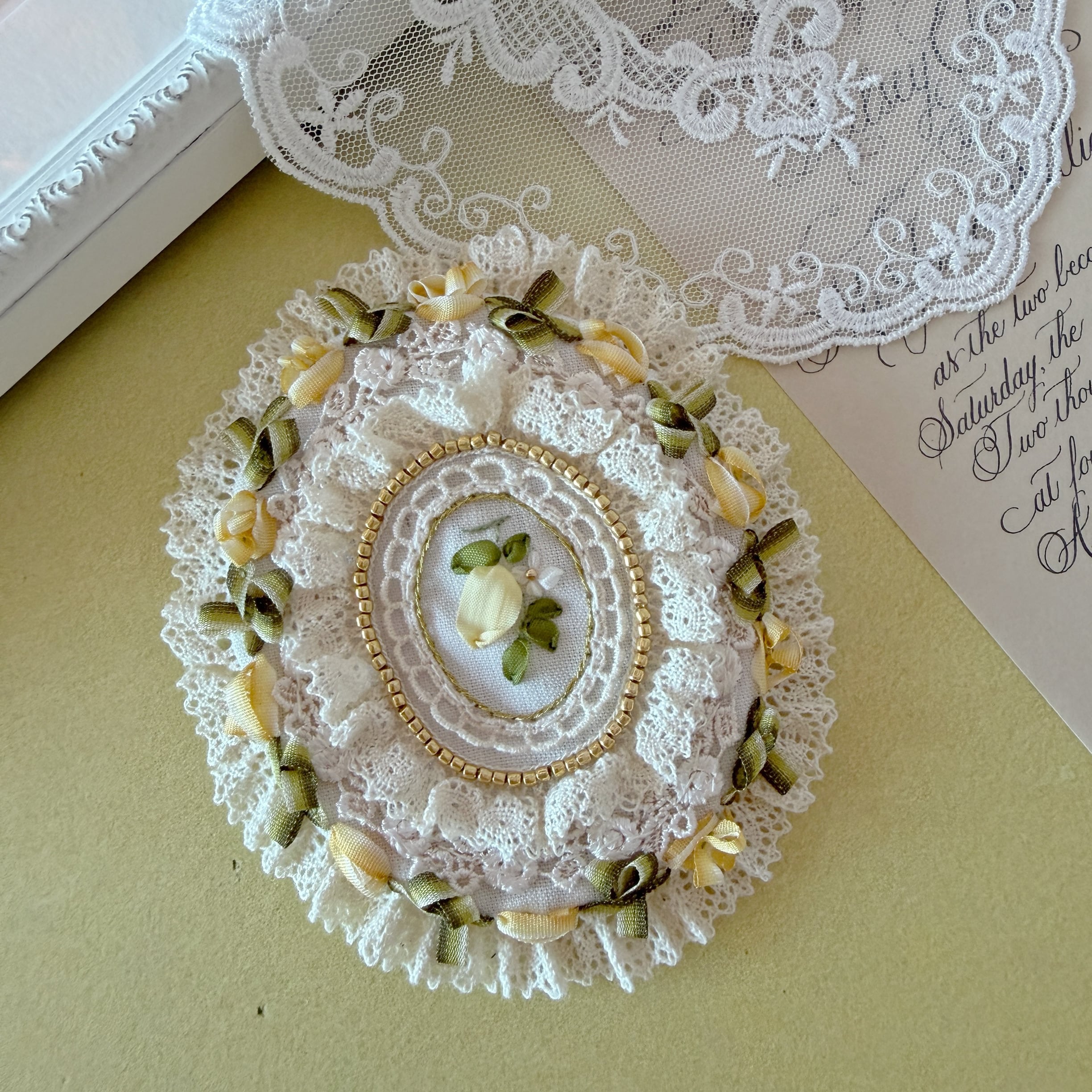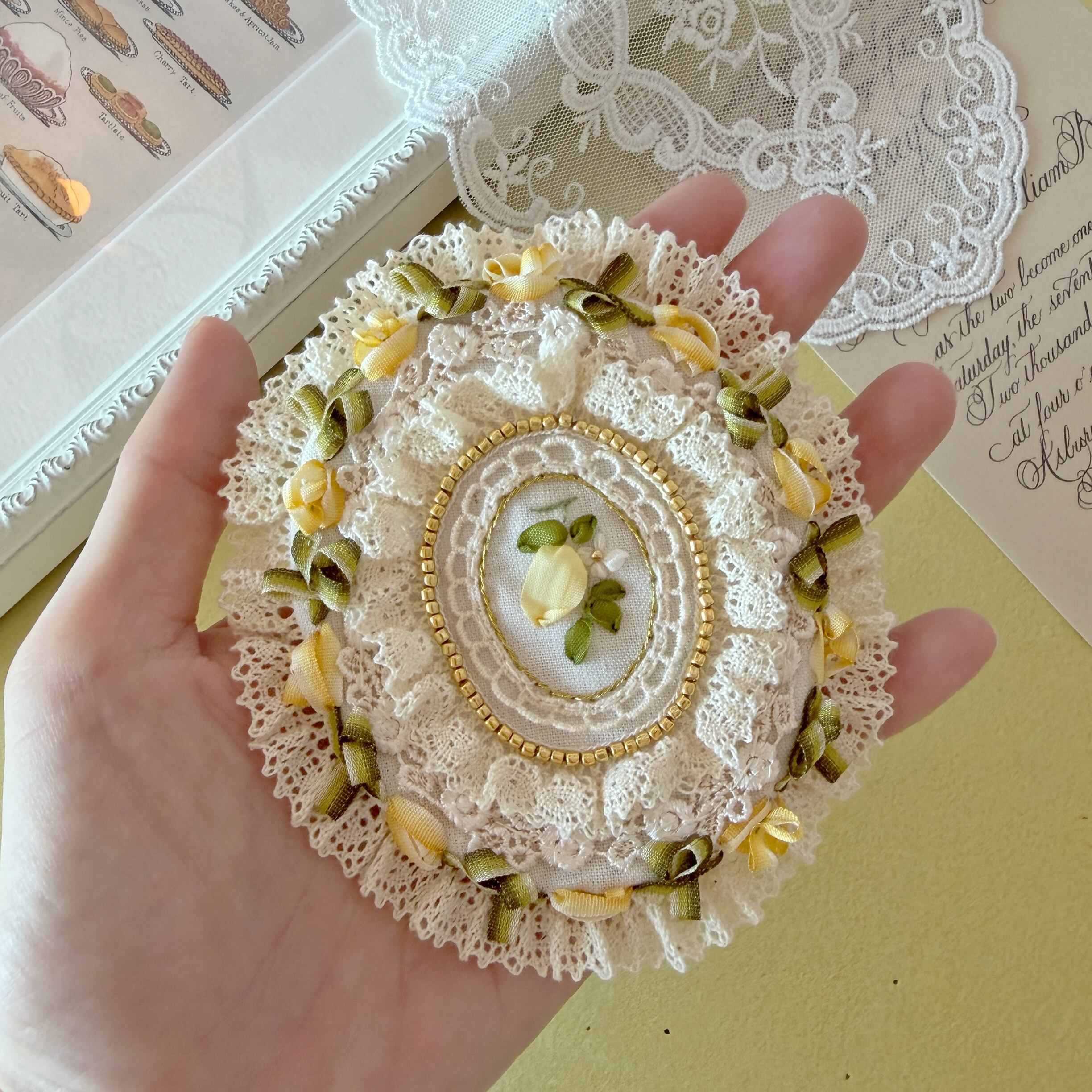 作品に使われているリボンや糸をひっかけないよう十分ご注意くださいませ。