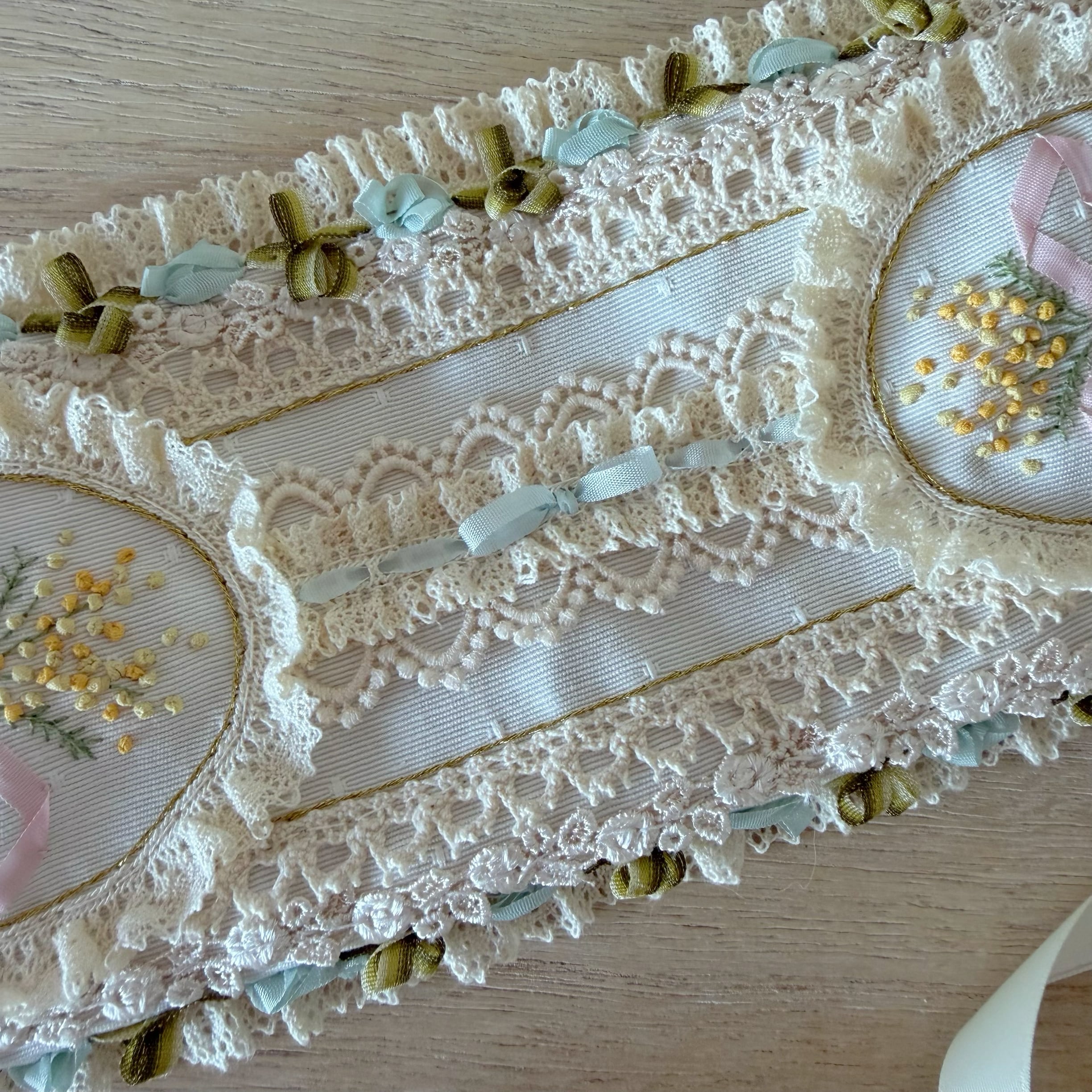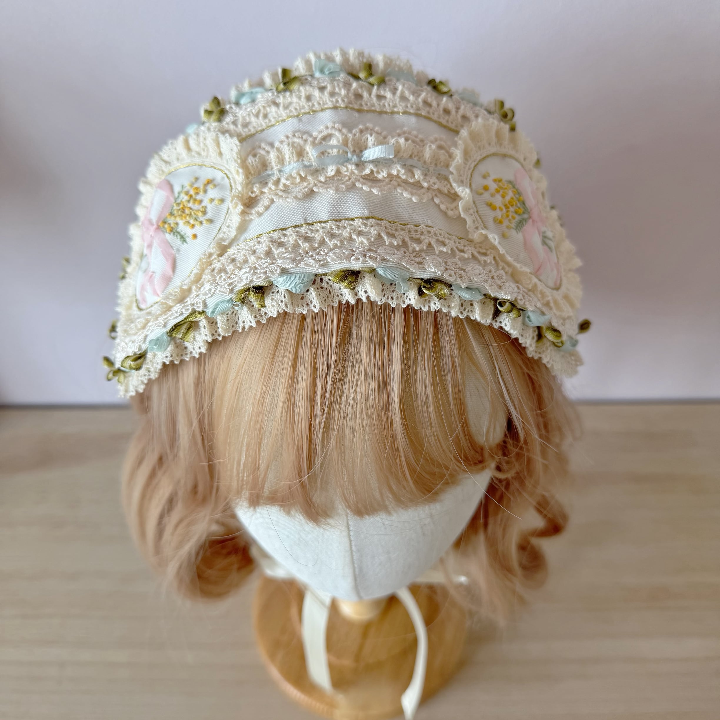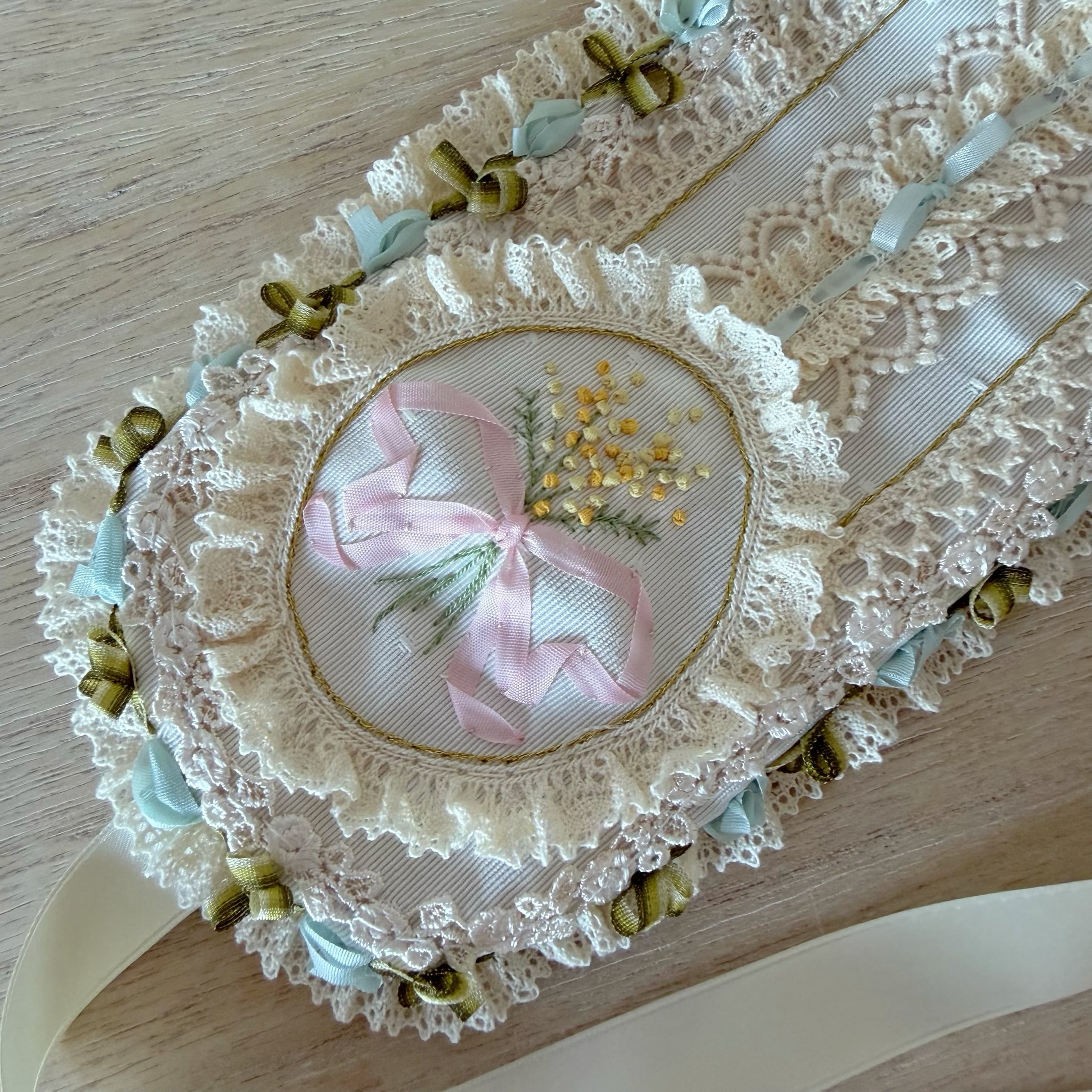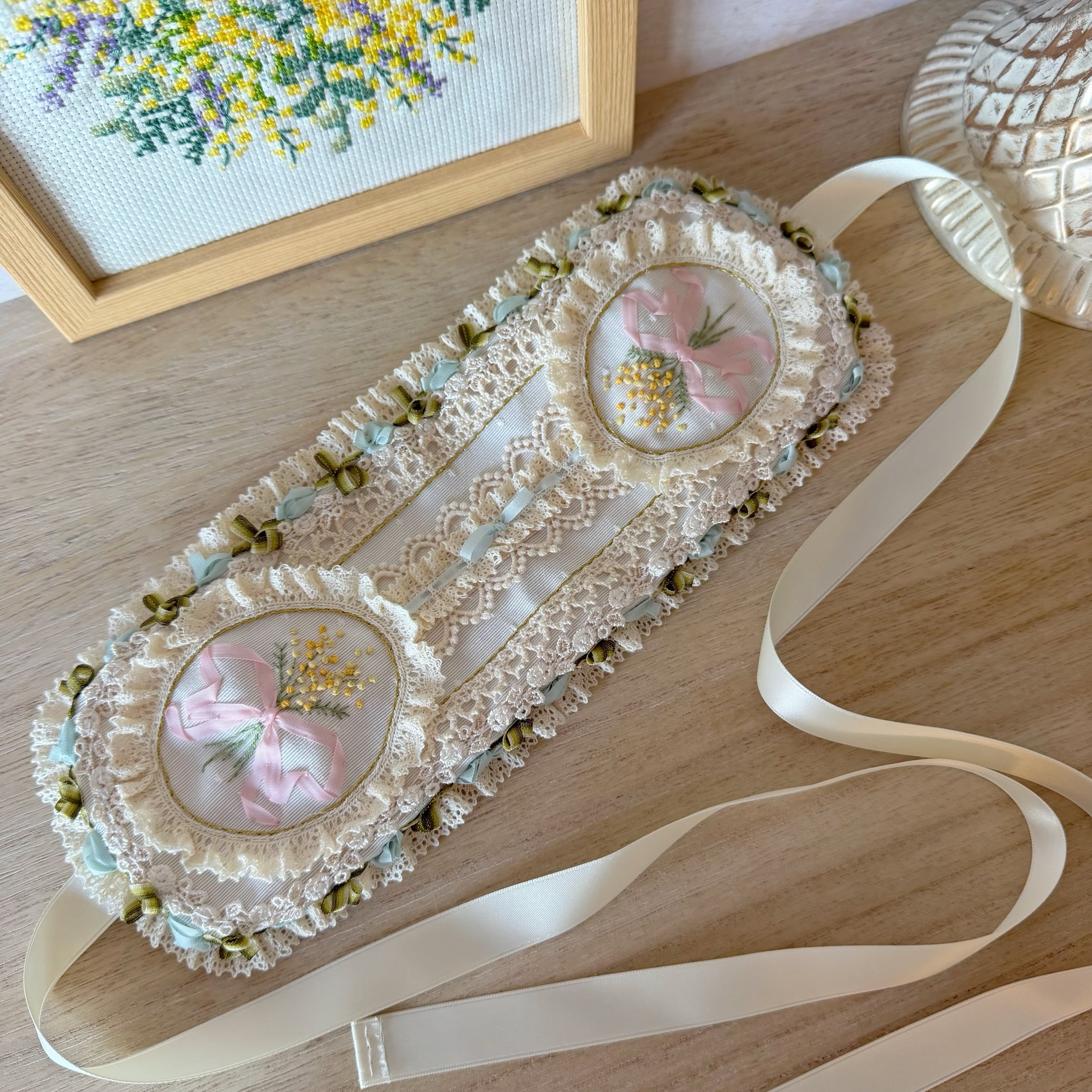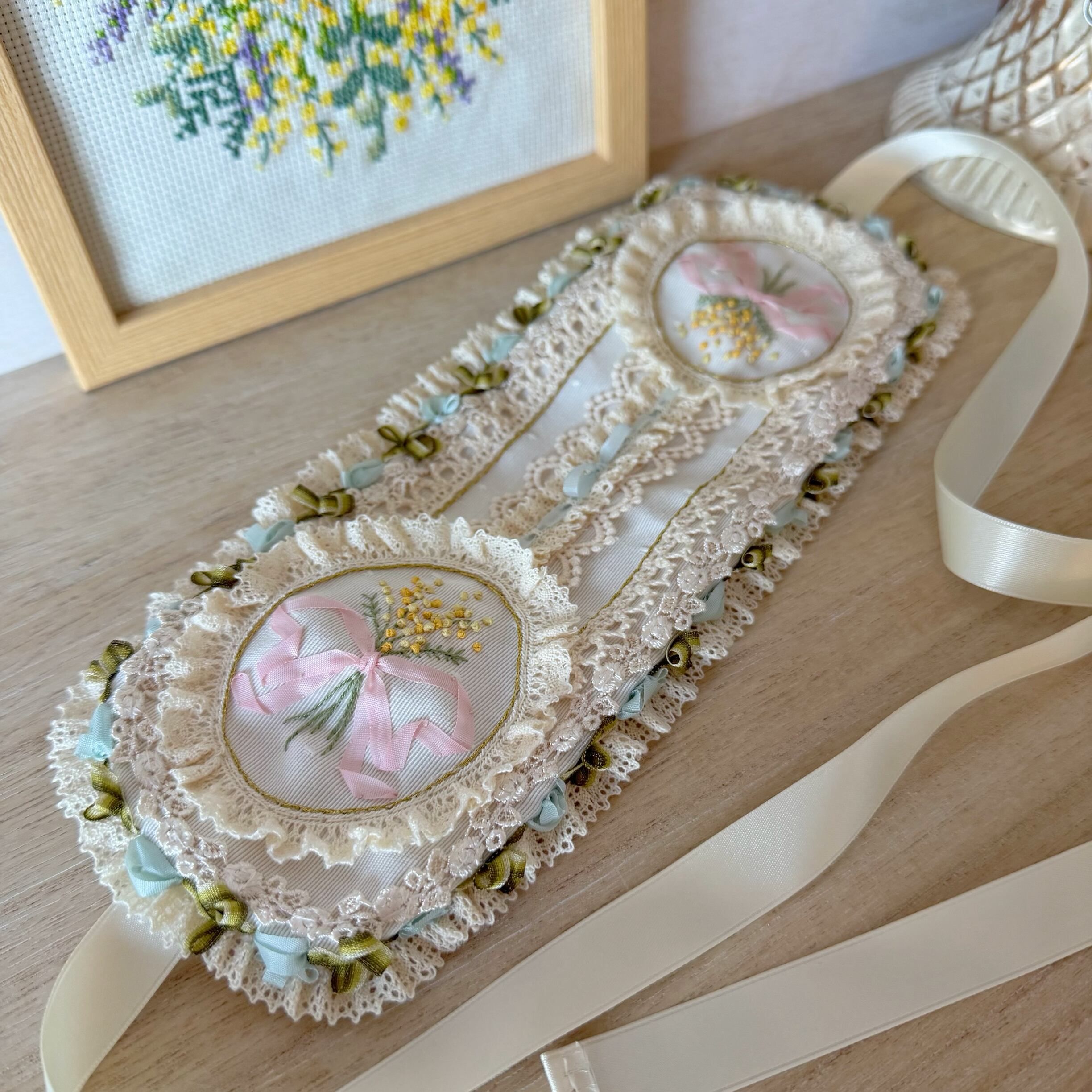 作品に使われているリボンや糸をひっかけないよう十分ご注意くださいませ。