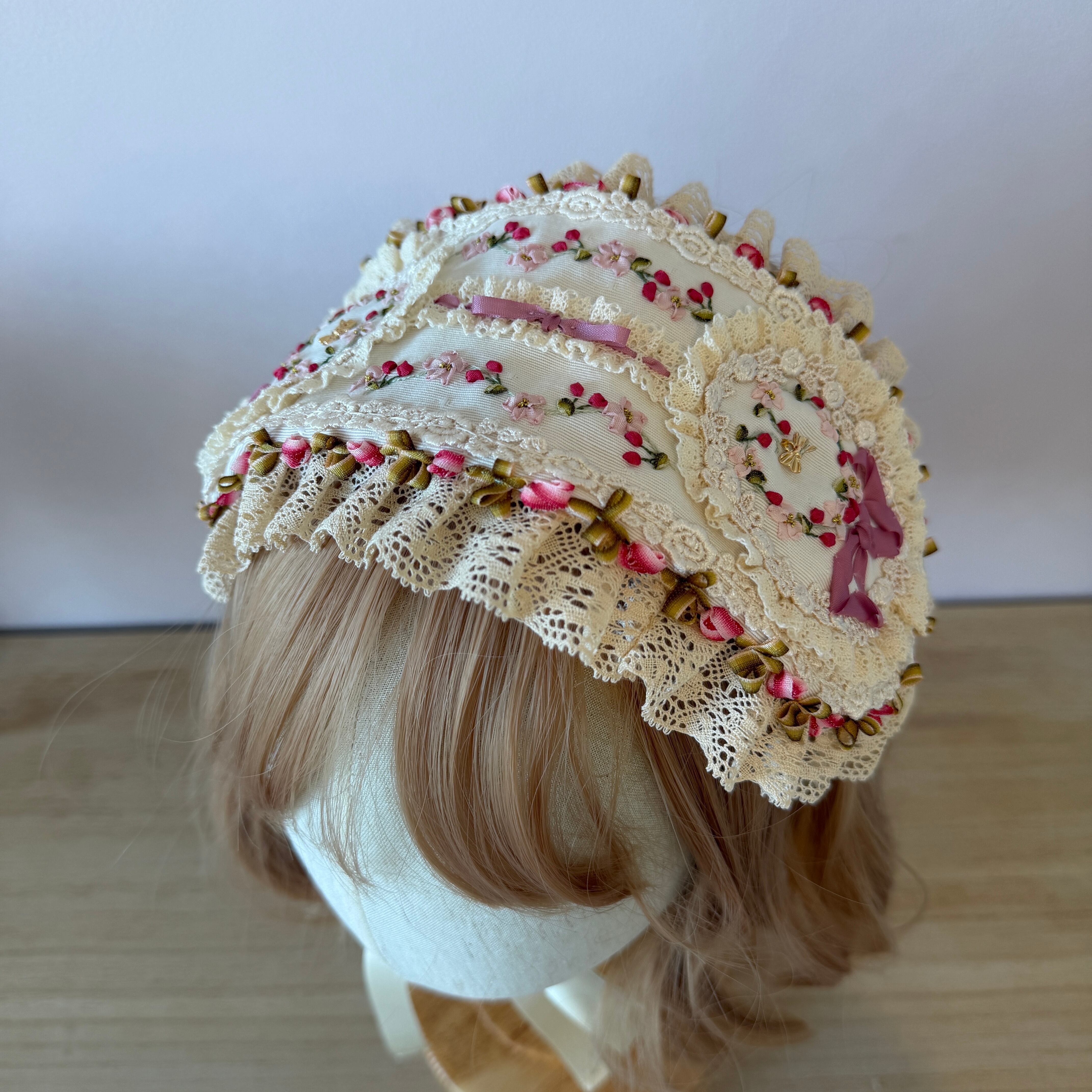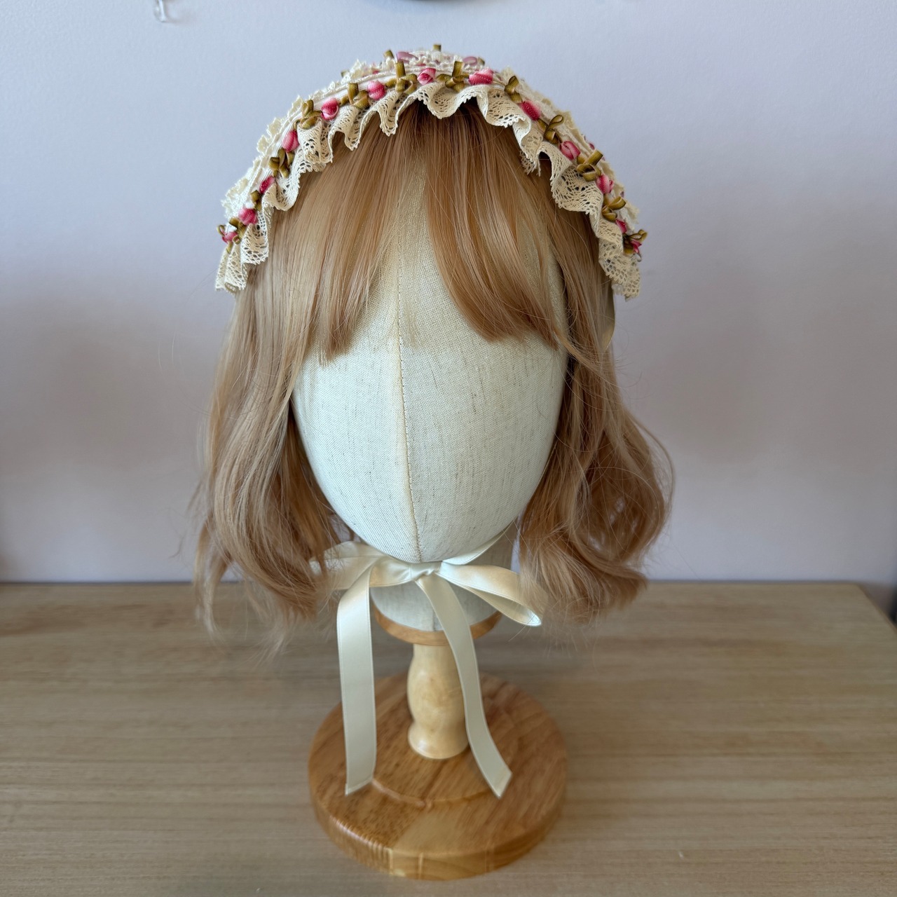 まるで古い手紙に添えられた押し花のように、優しく、記憶に残るような佇まいのヘッドドレスです。