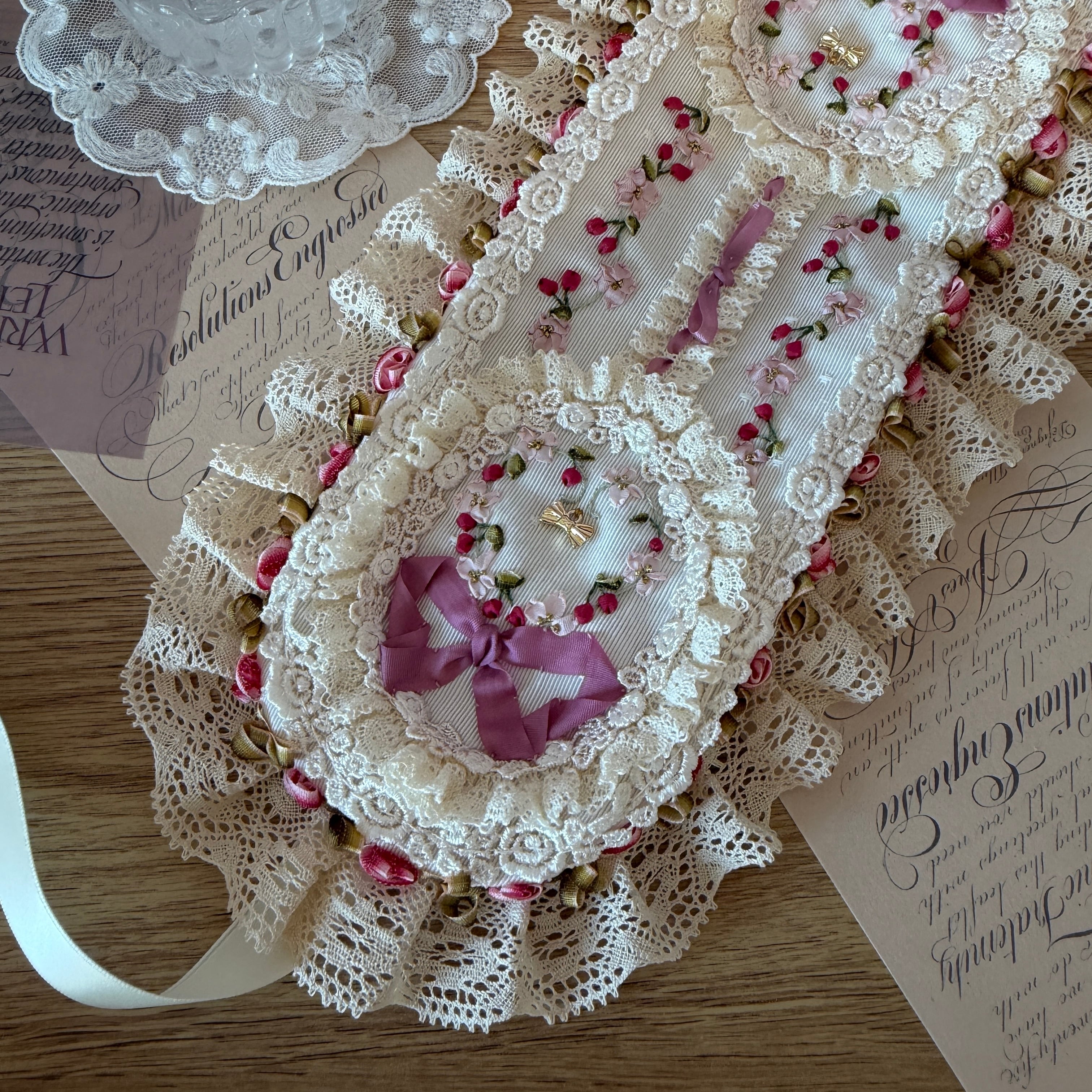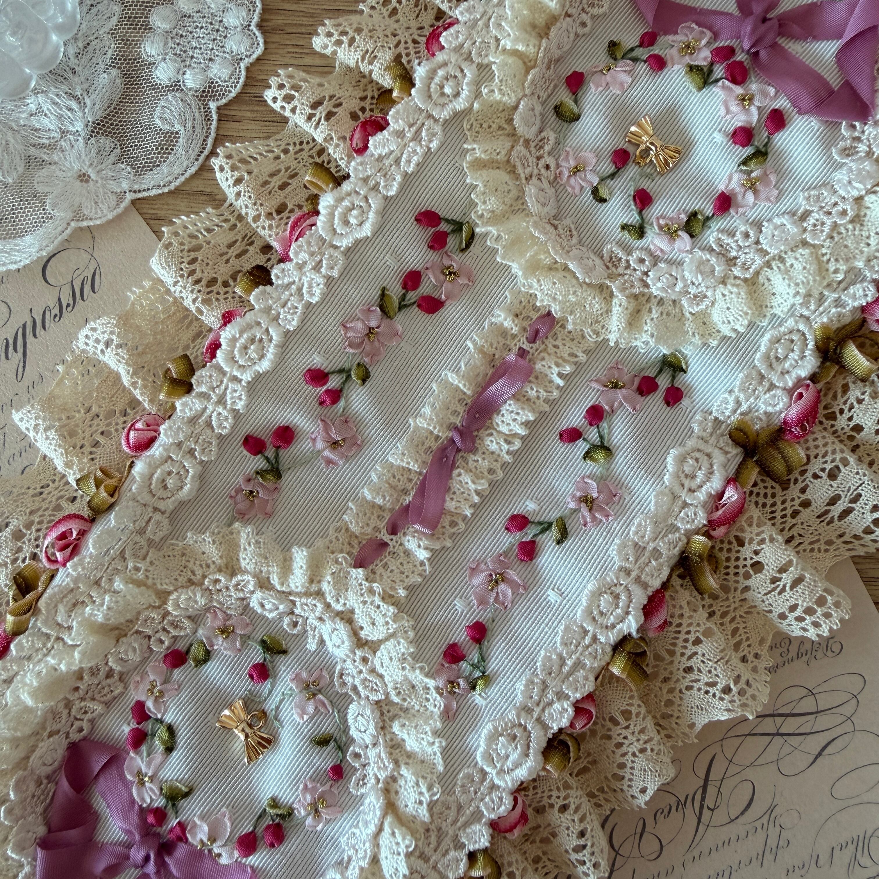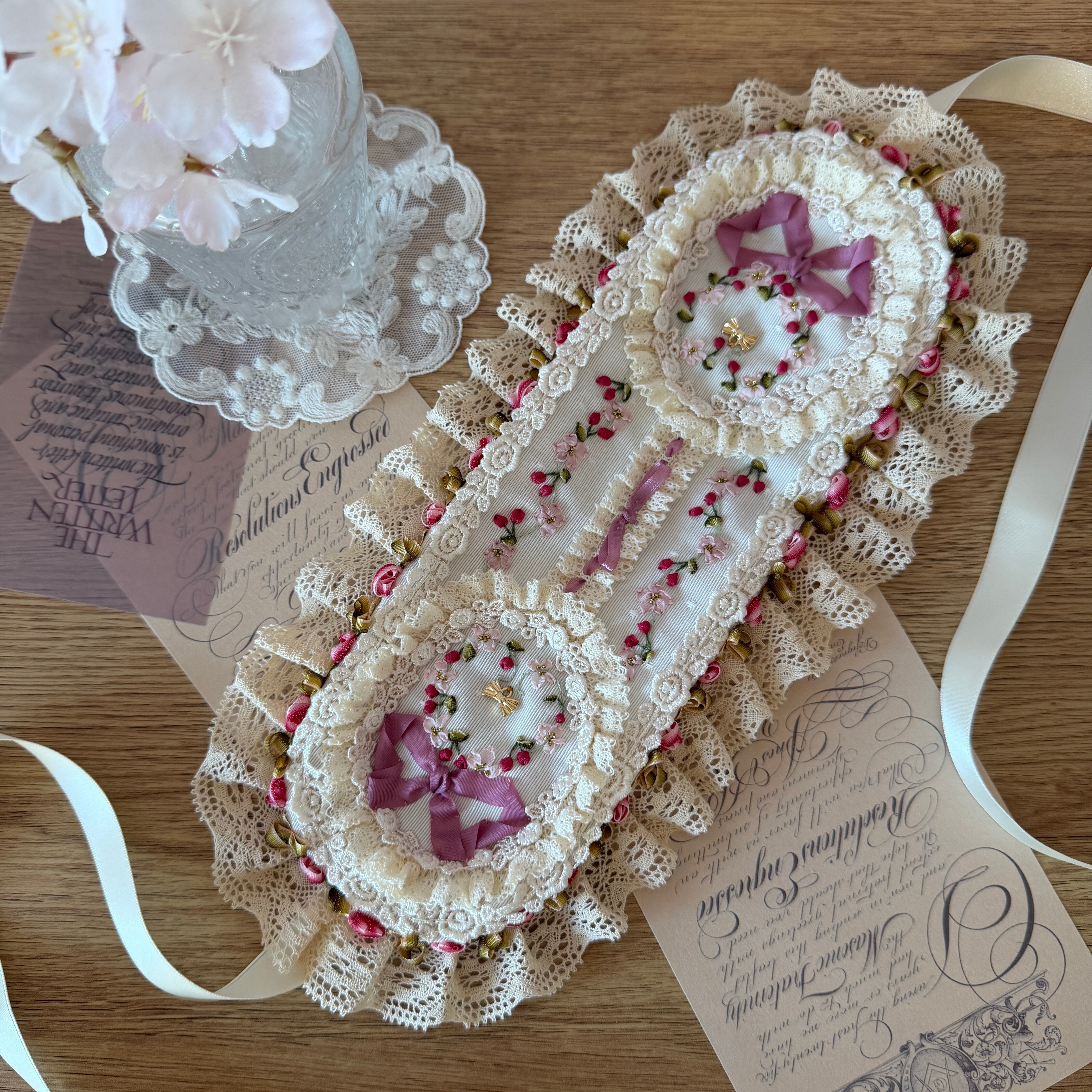 作品に使われているリボンや糸をひっかけないよう十分ご注意くださいませ。
