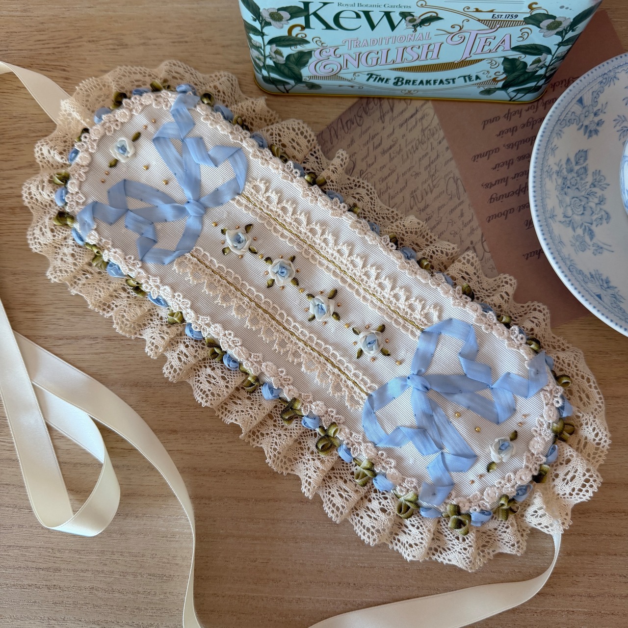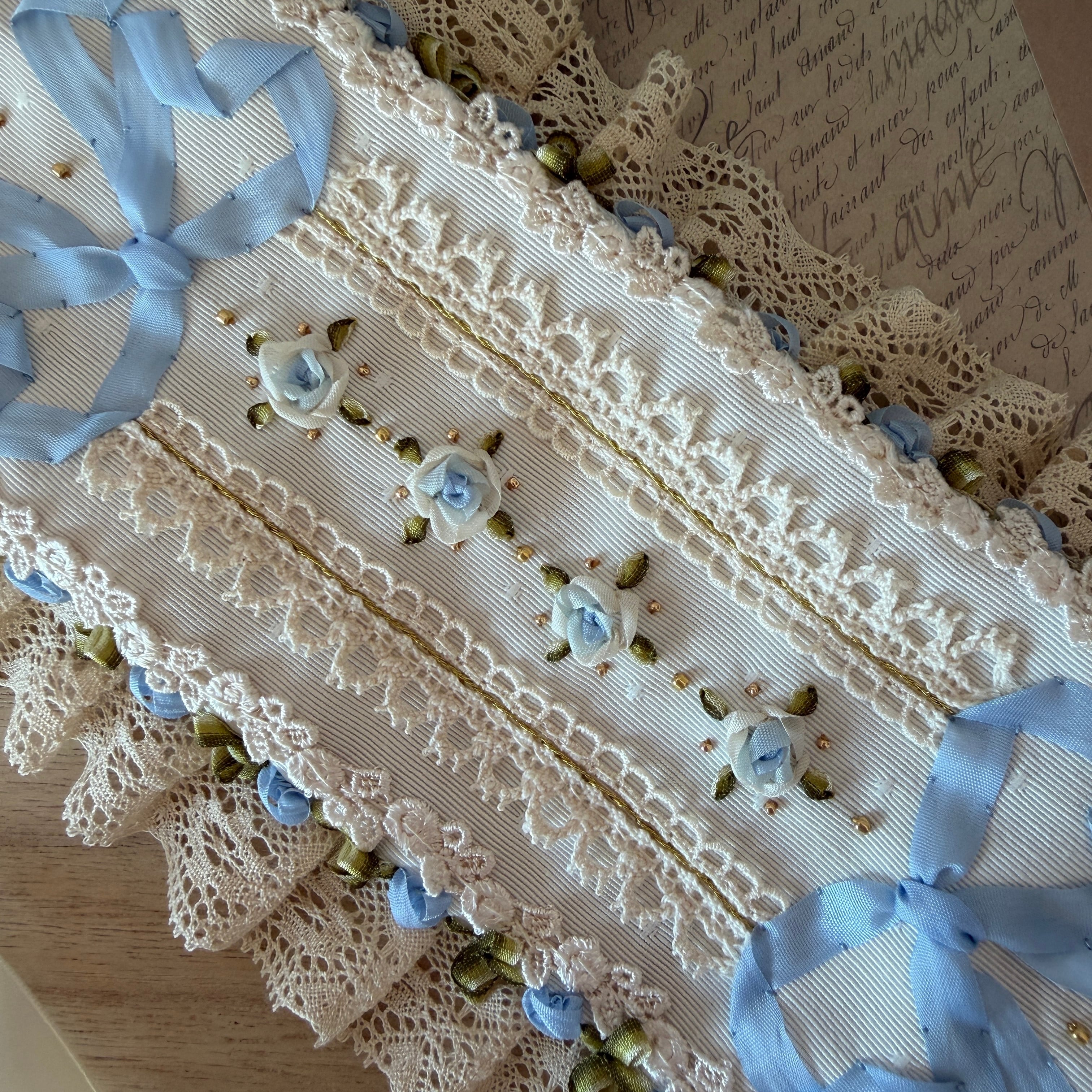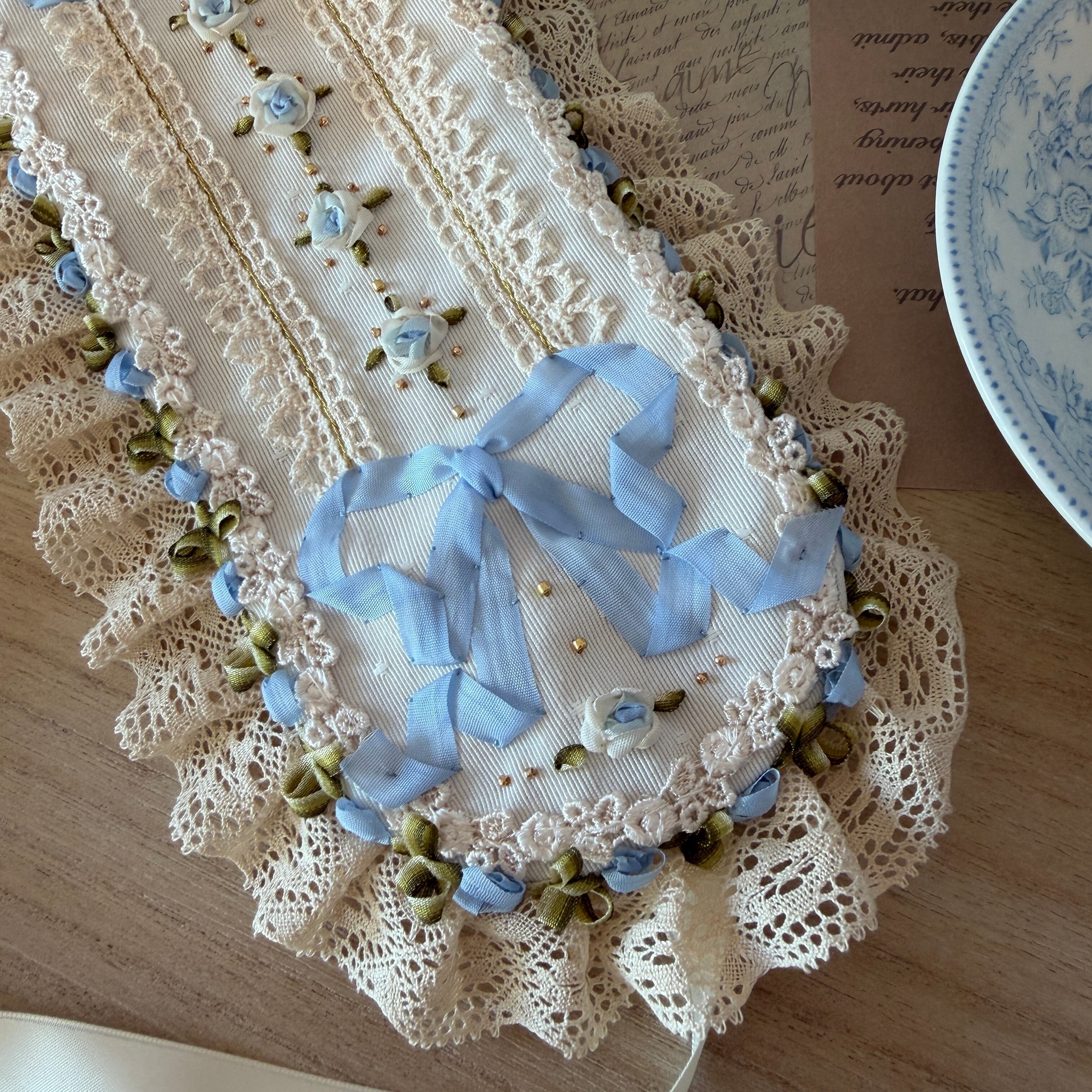 作品に使われているリボンや糸をひっかけないよう十分ご注意くださいませ。