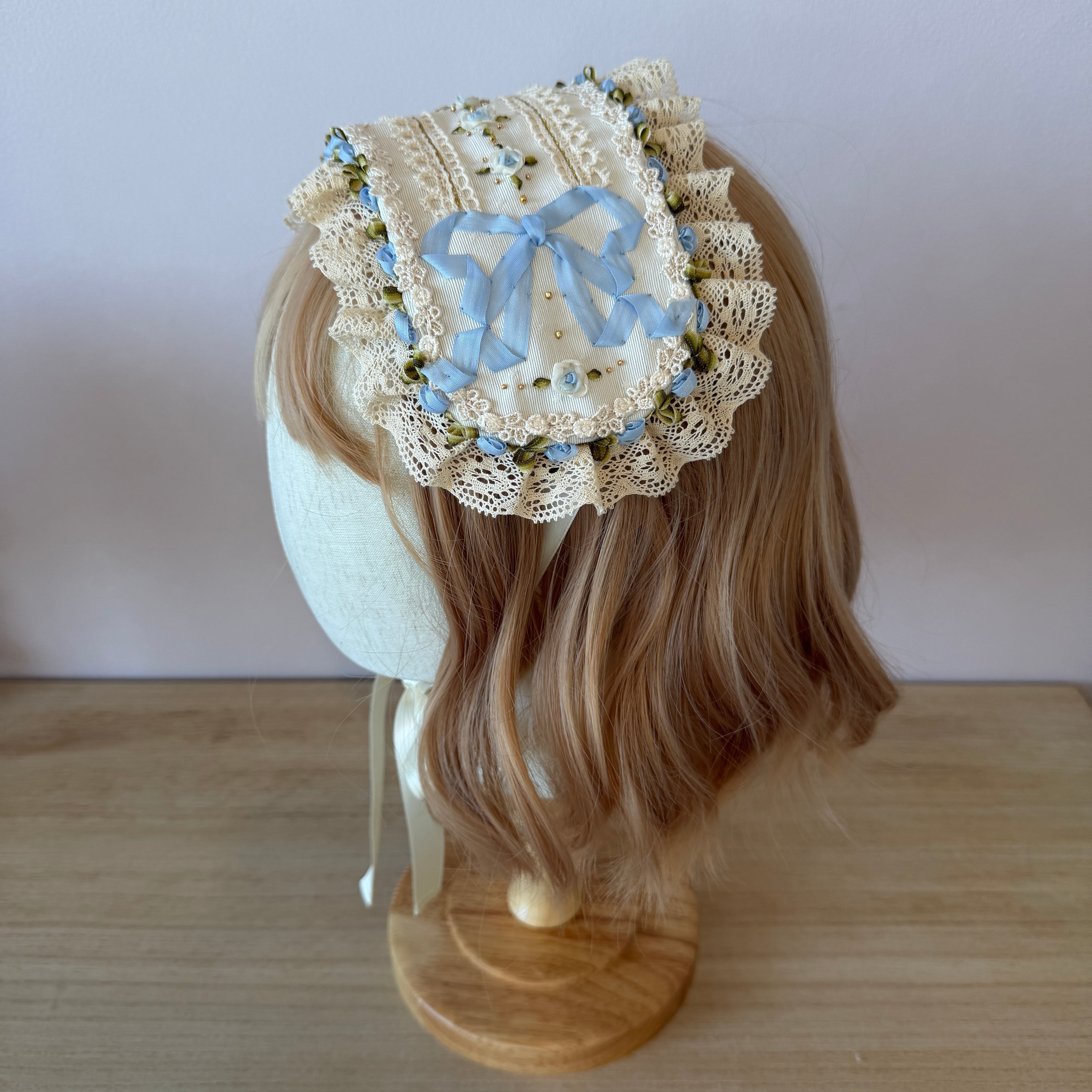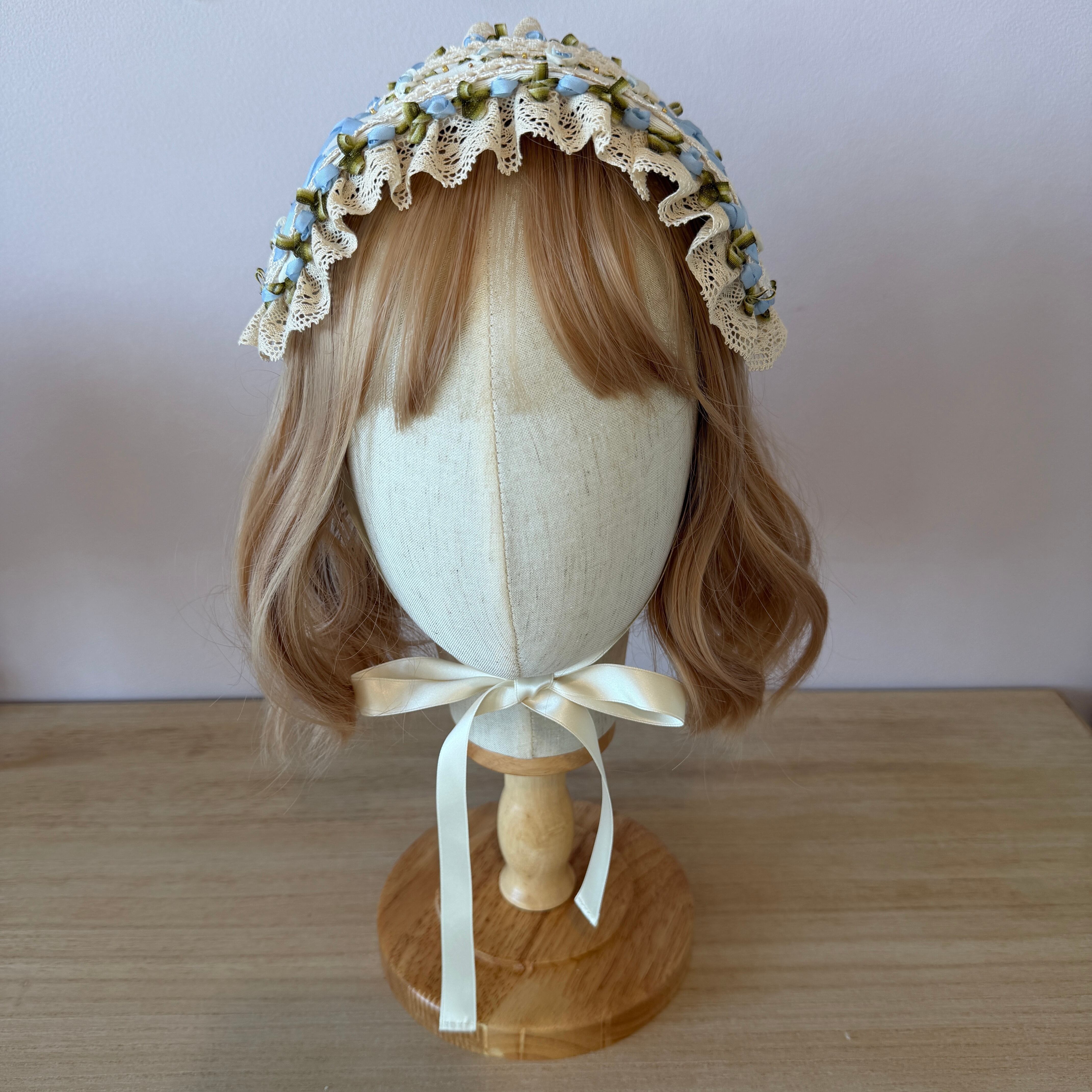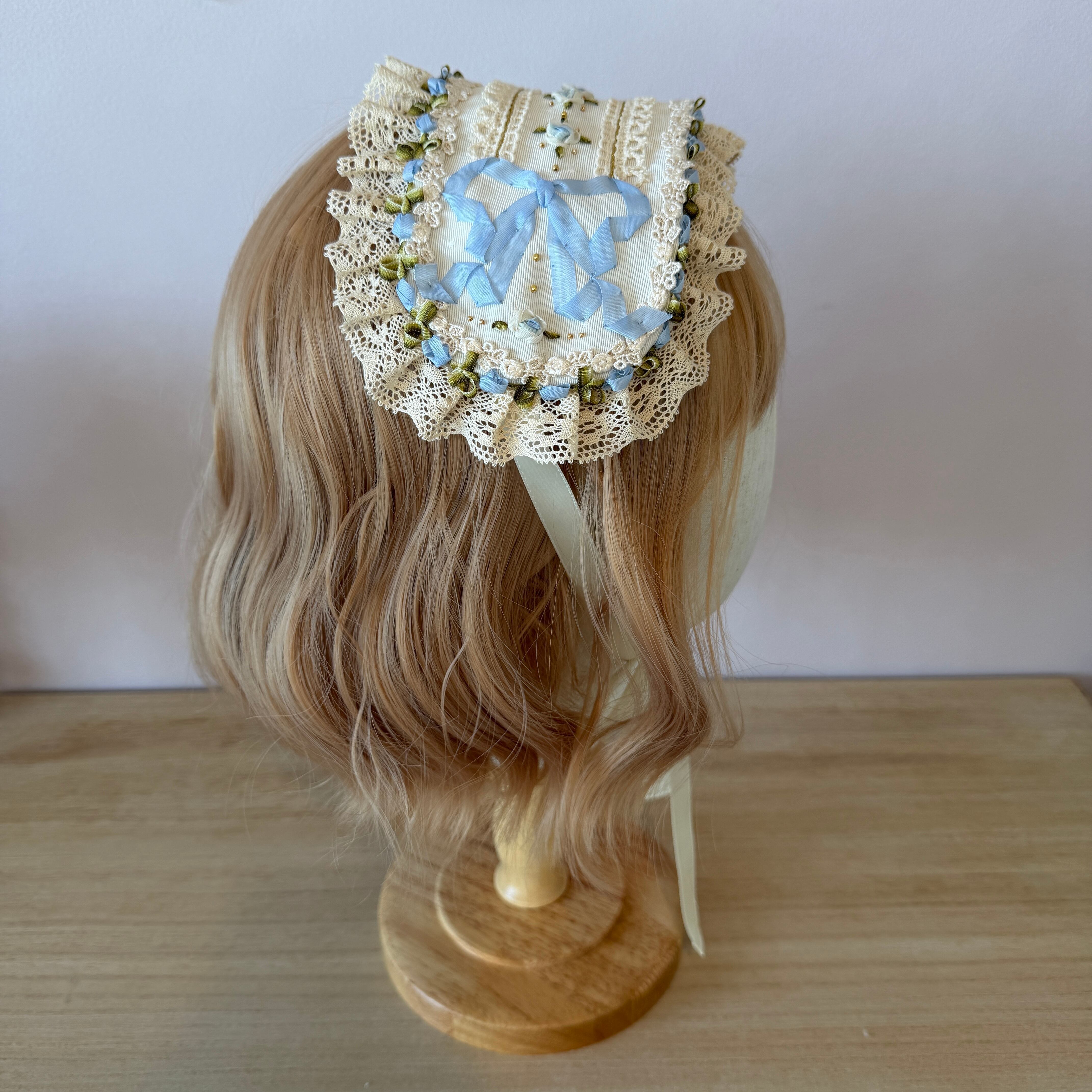 英国の初夏、庭園で楽しむティータイムをイメージした、清々しいブルーのヘッドドレスです。