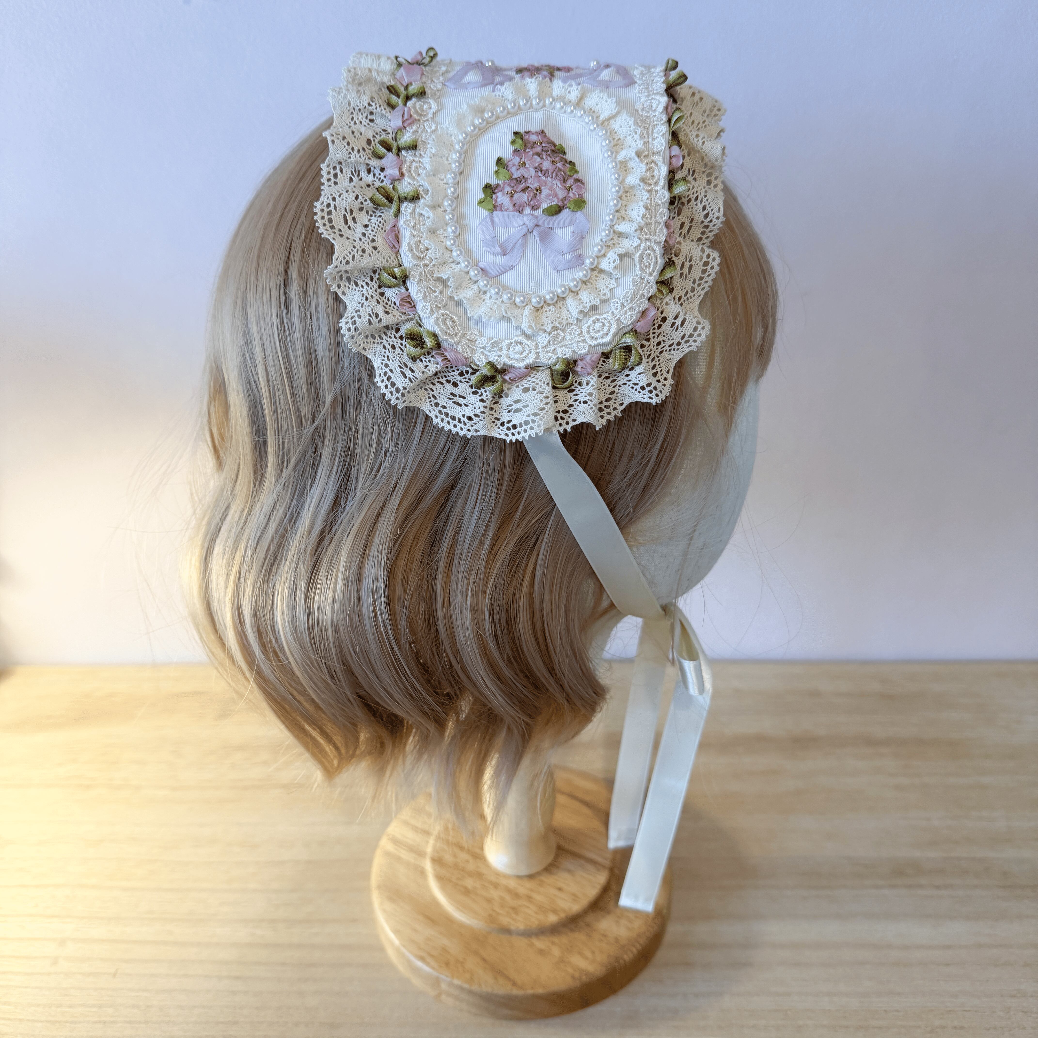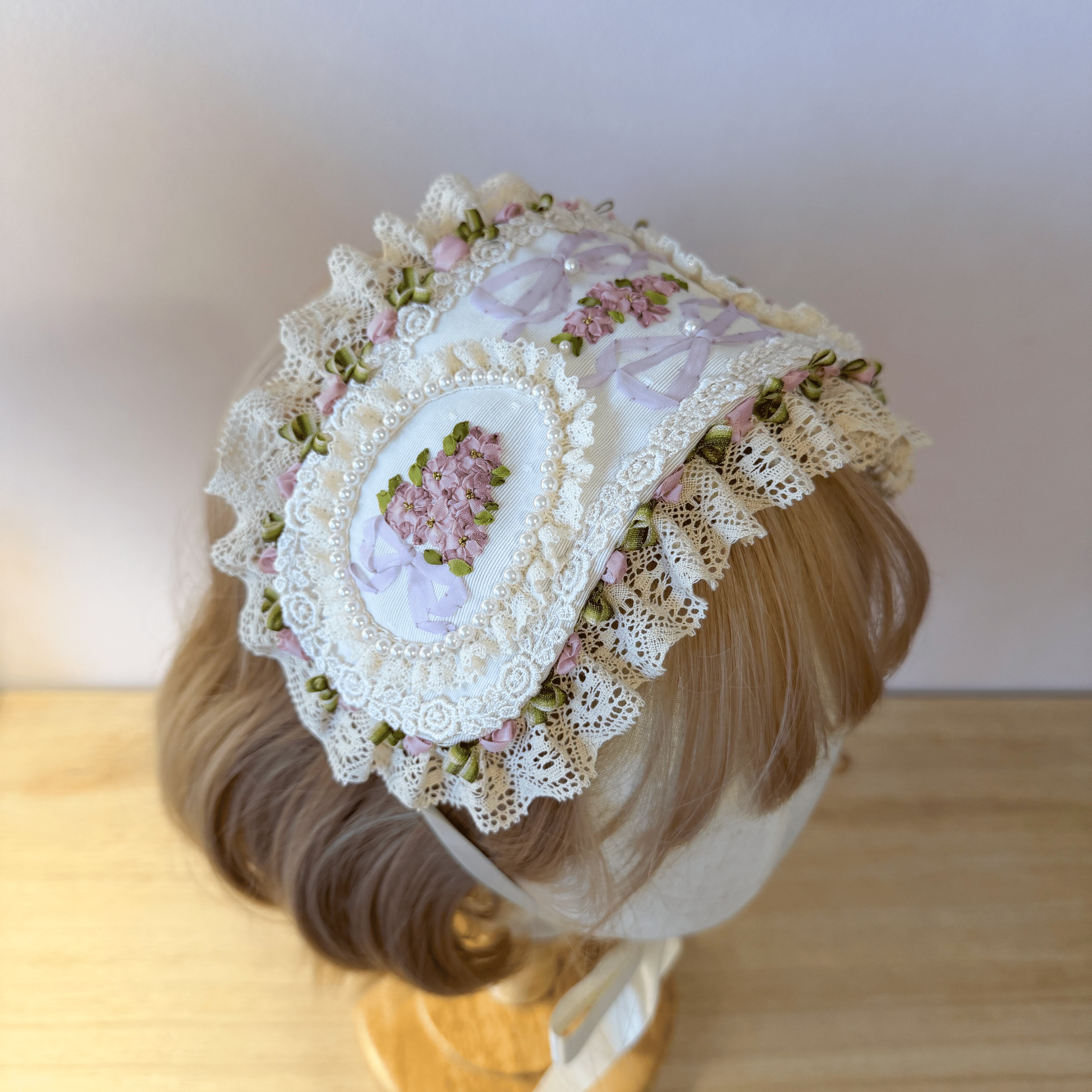 ティータイムや特別な集まりにふさわしい、主役級のヘッドドレスです。