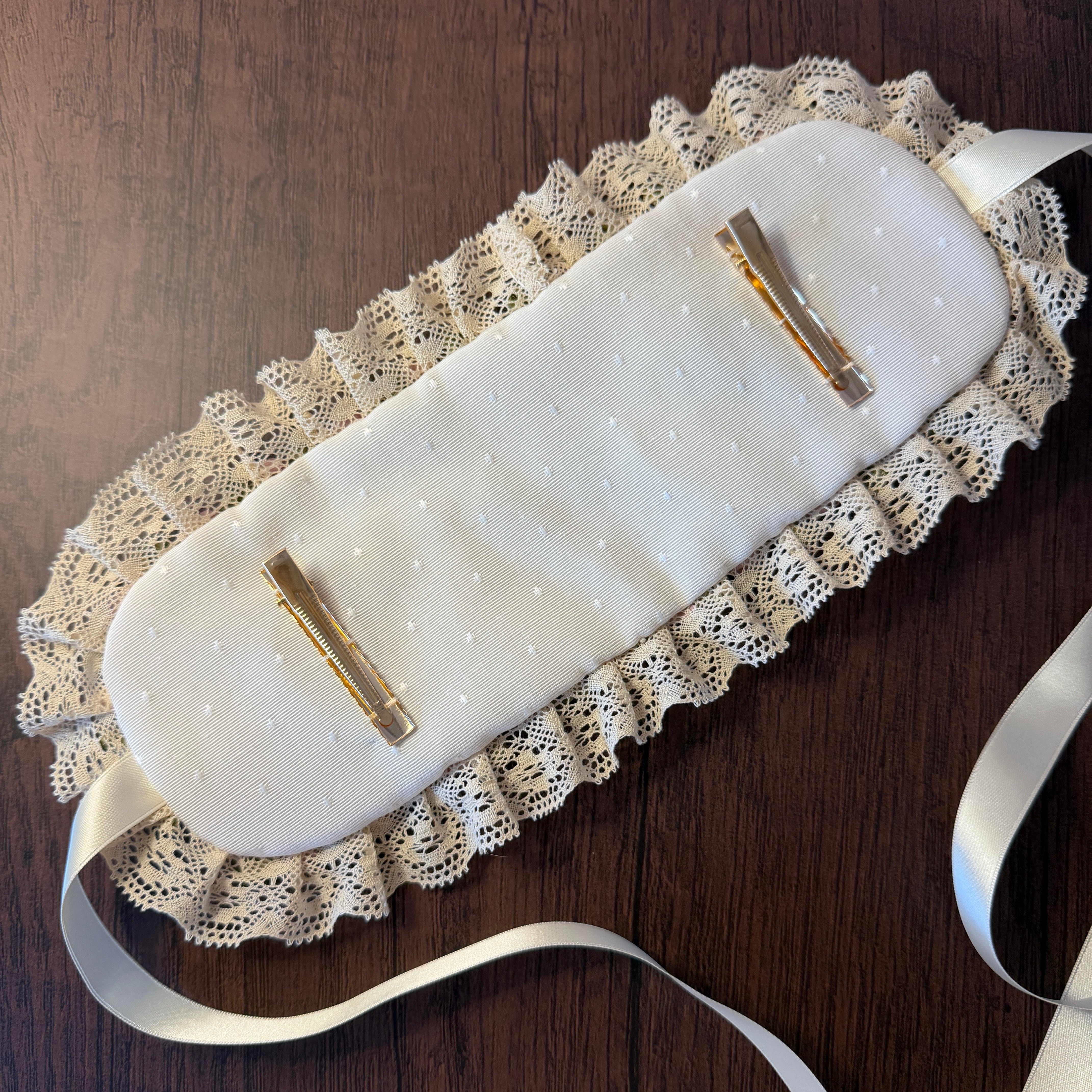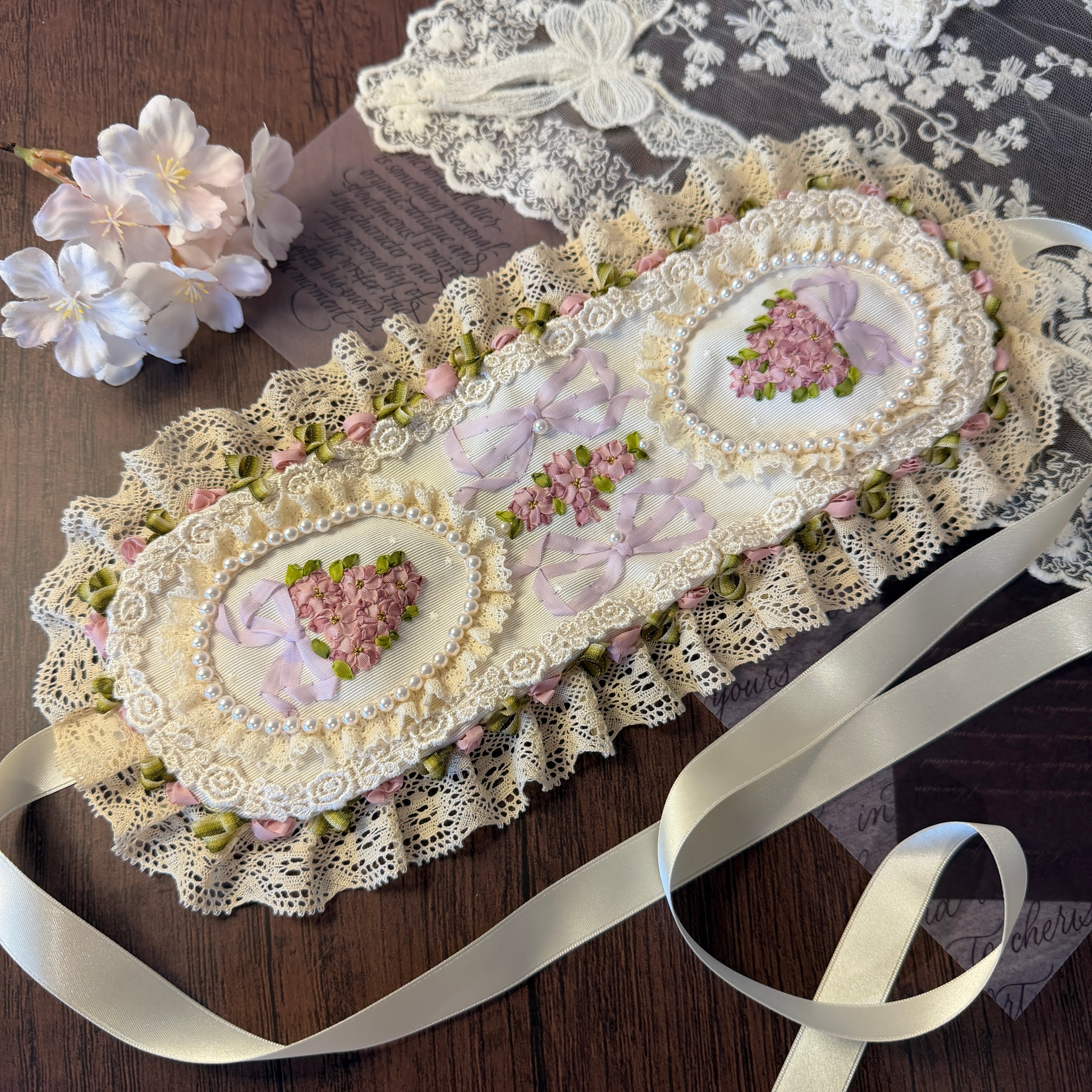 作品に使われているリボンや糸をひっかけないよう十分ご注意くださいませ。