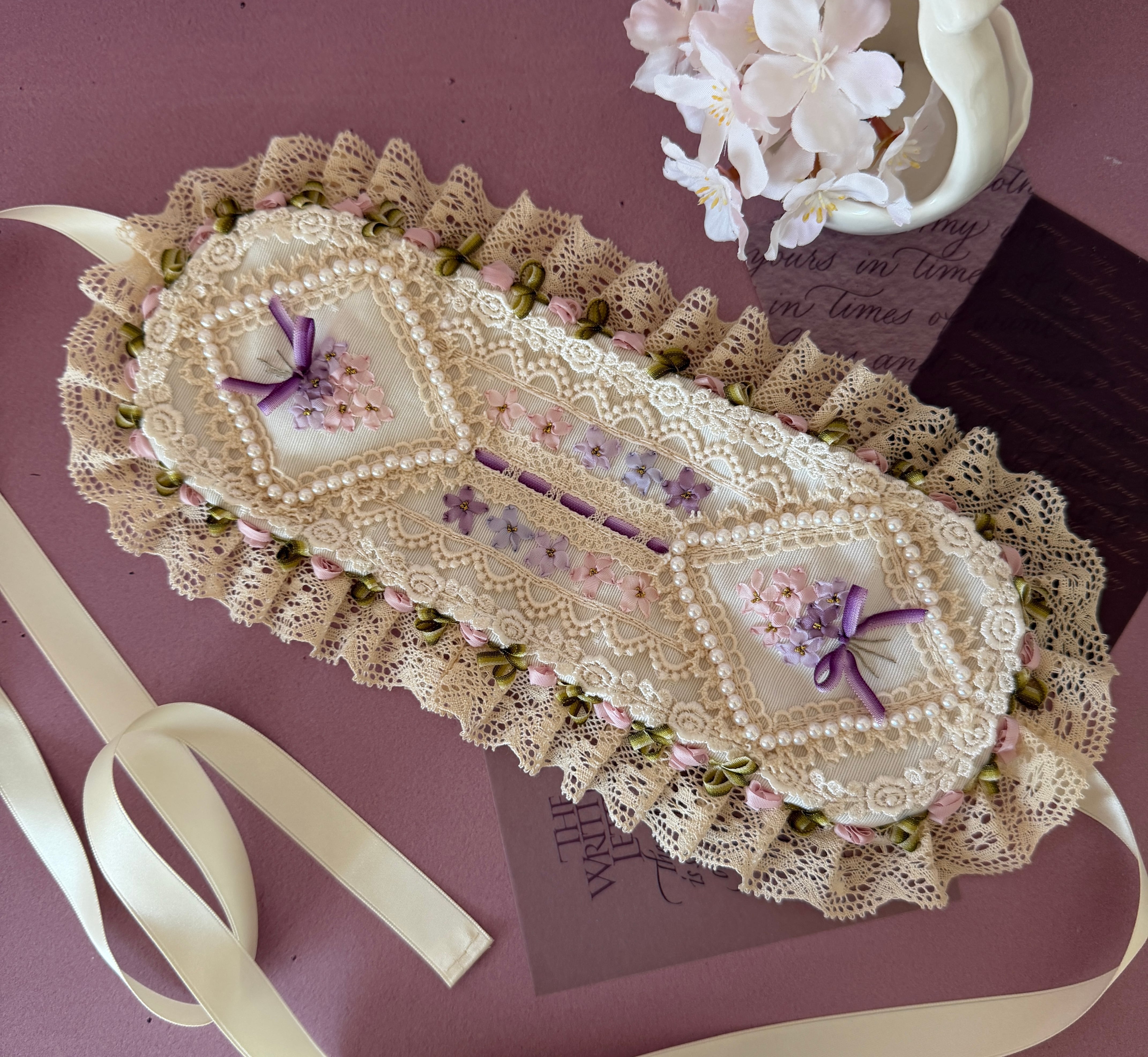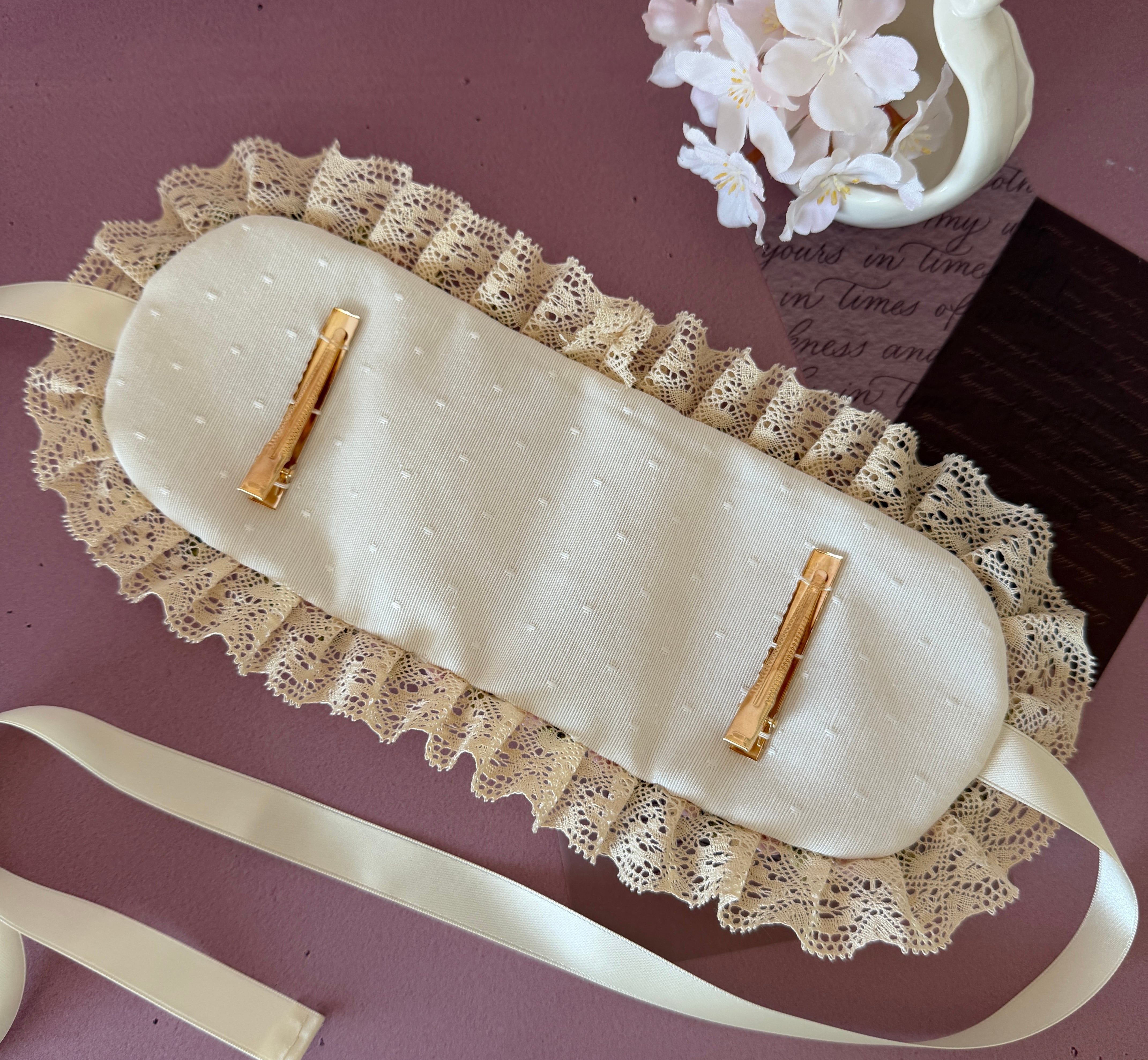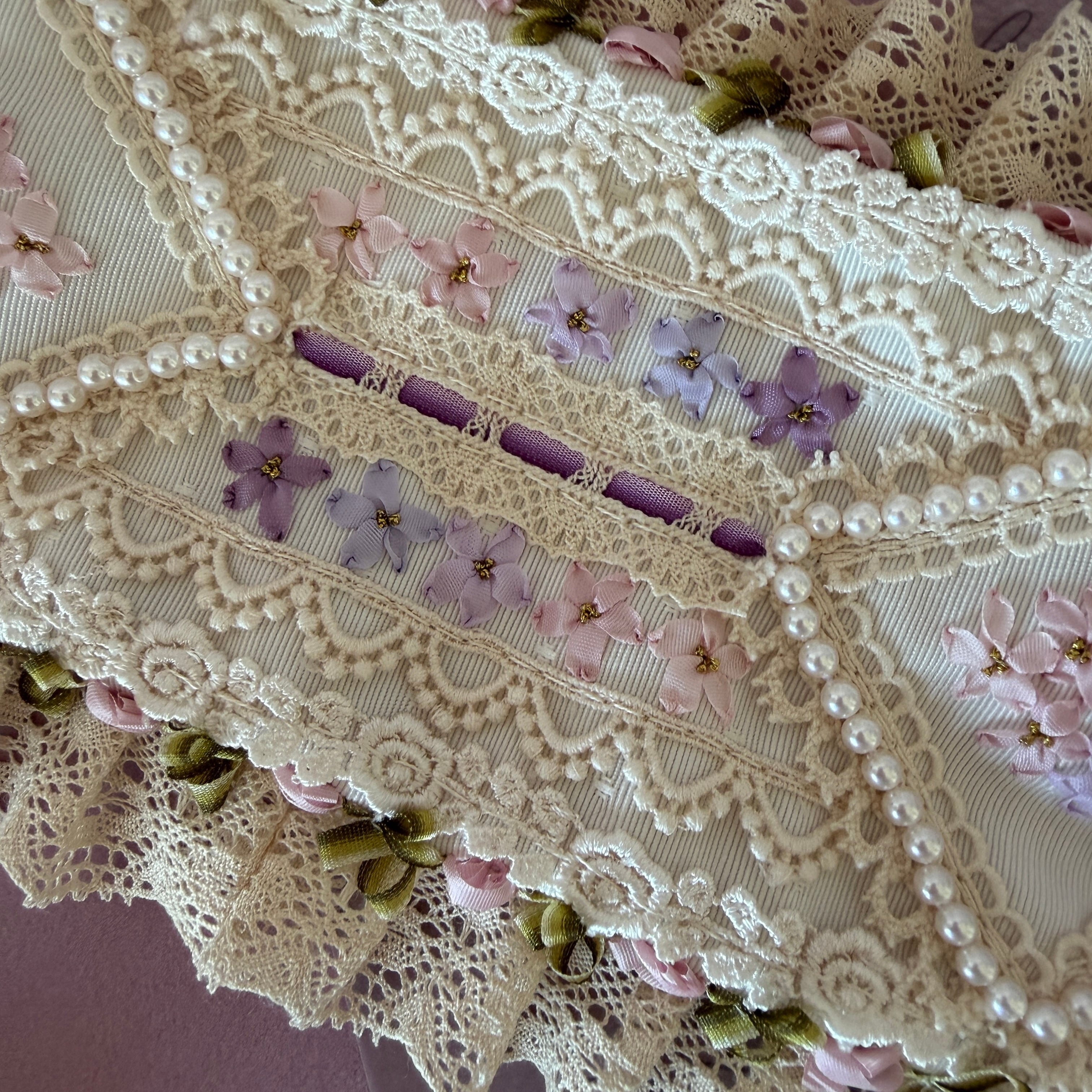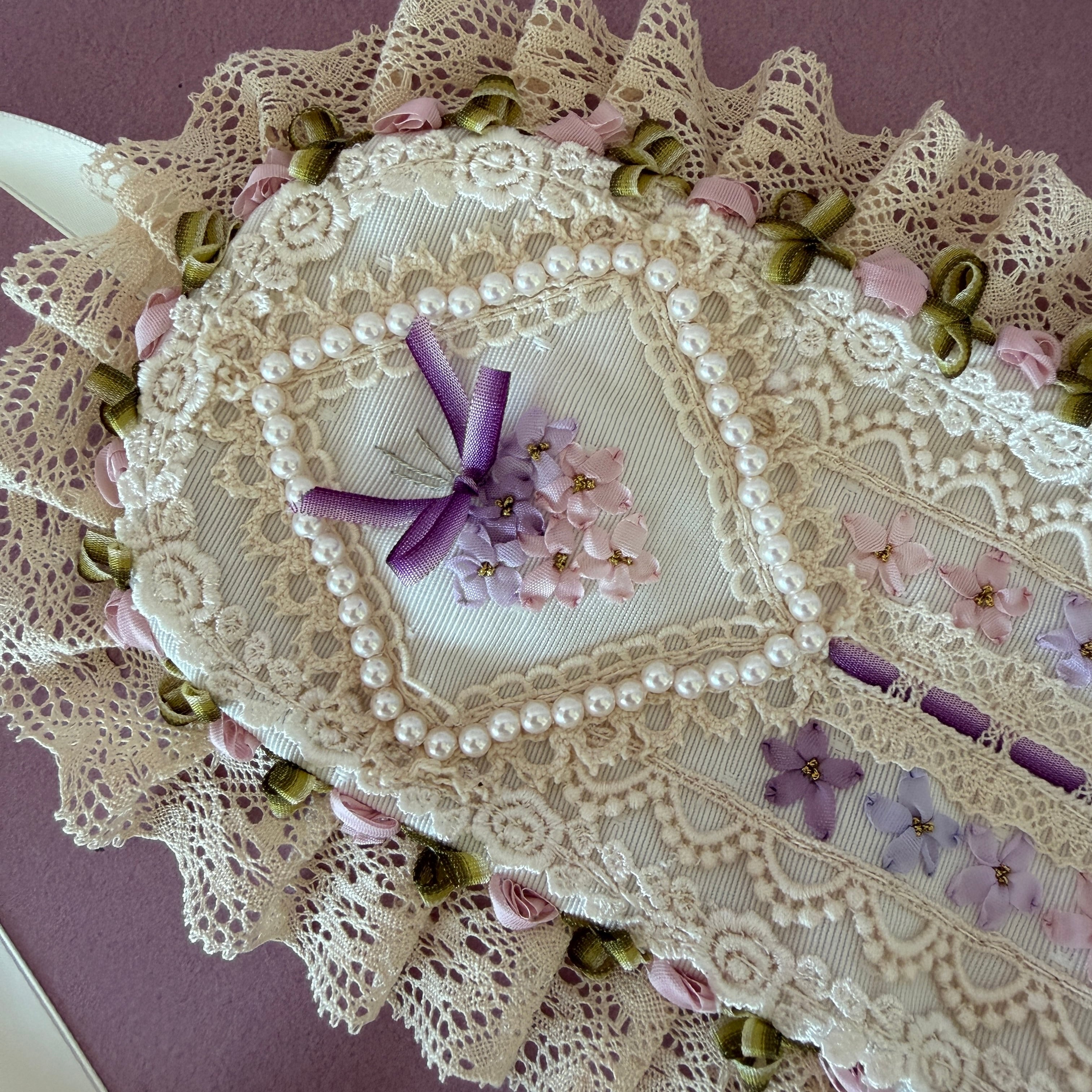 作品に使われているリボンや糸をひっかけないよう十分ご注意くださいませ。