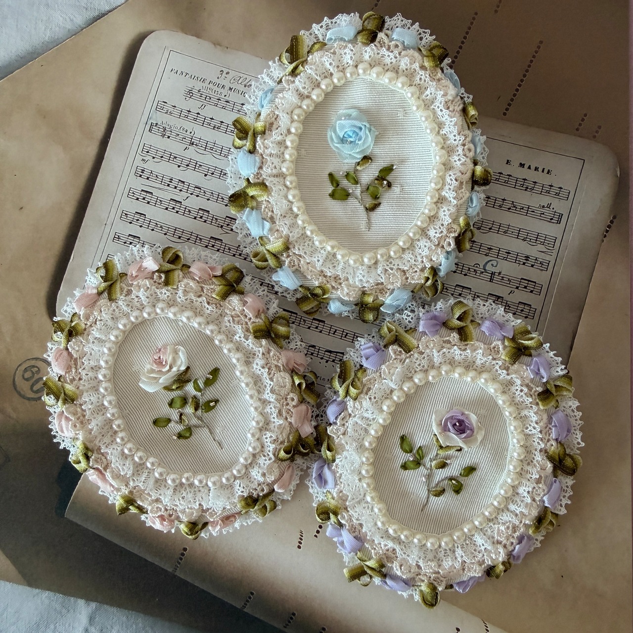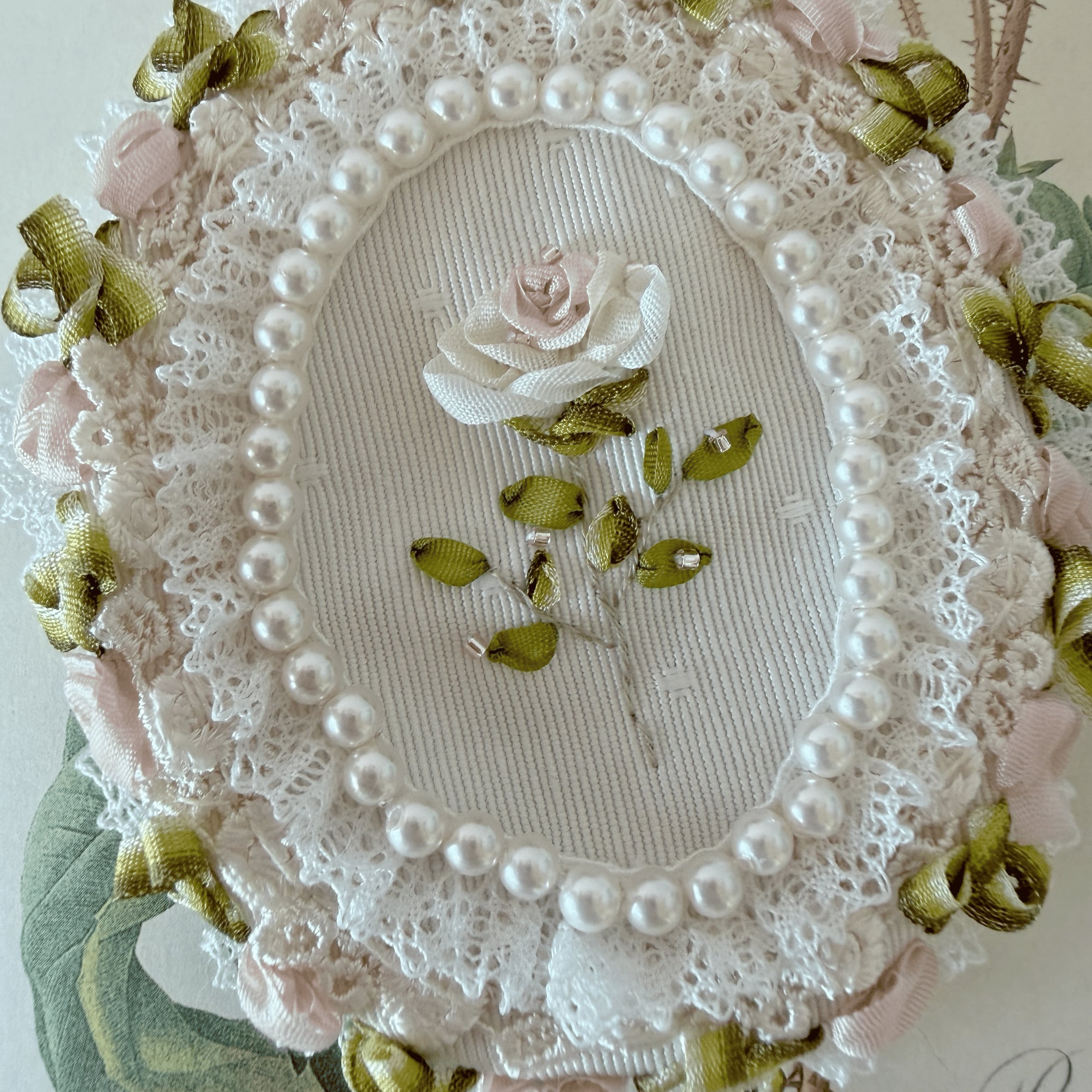 作品に使われているリボンや糸をひっかけないよう十分ご注意くださいませ。