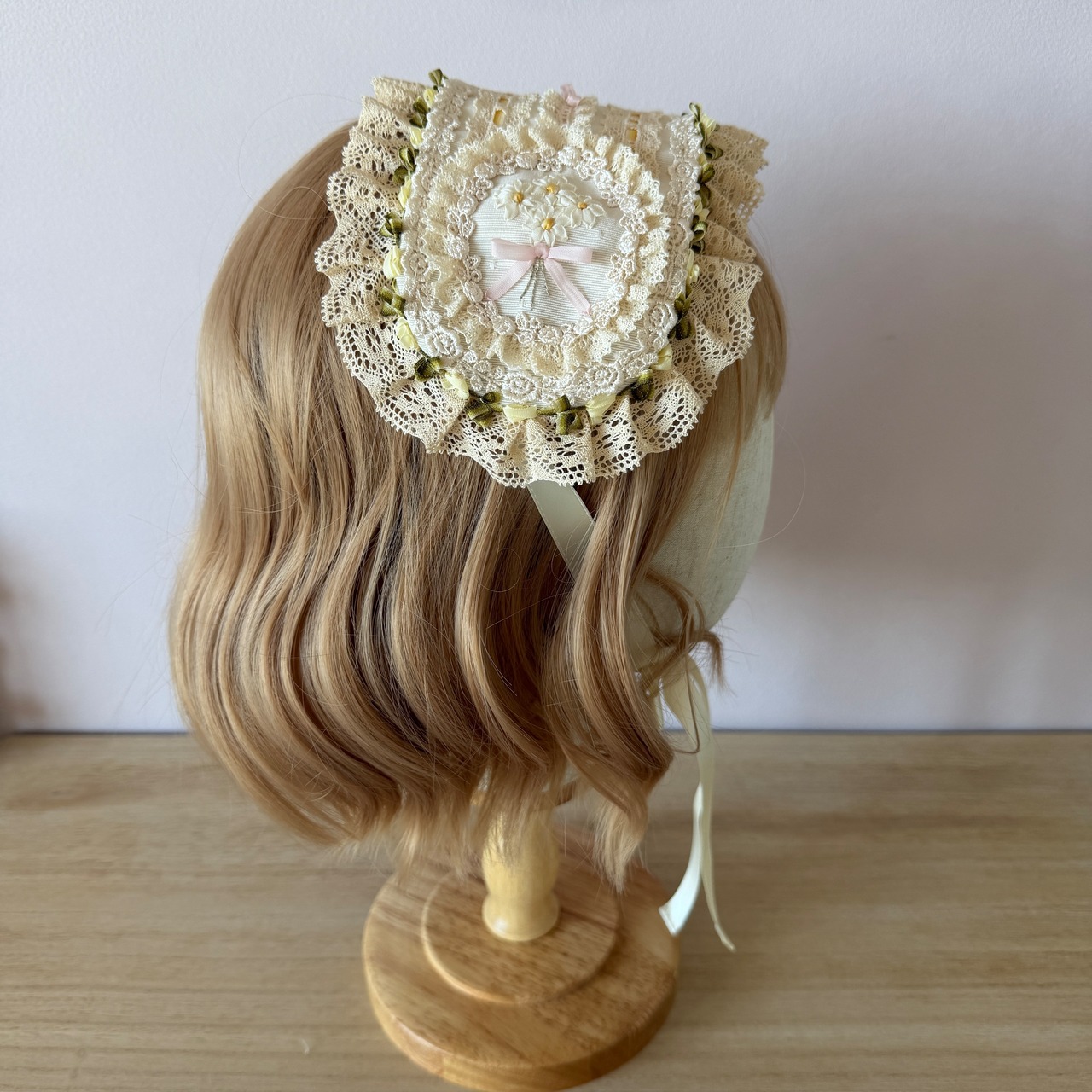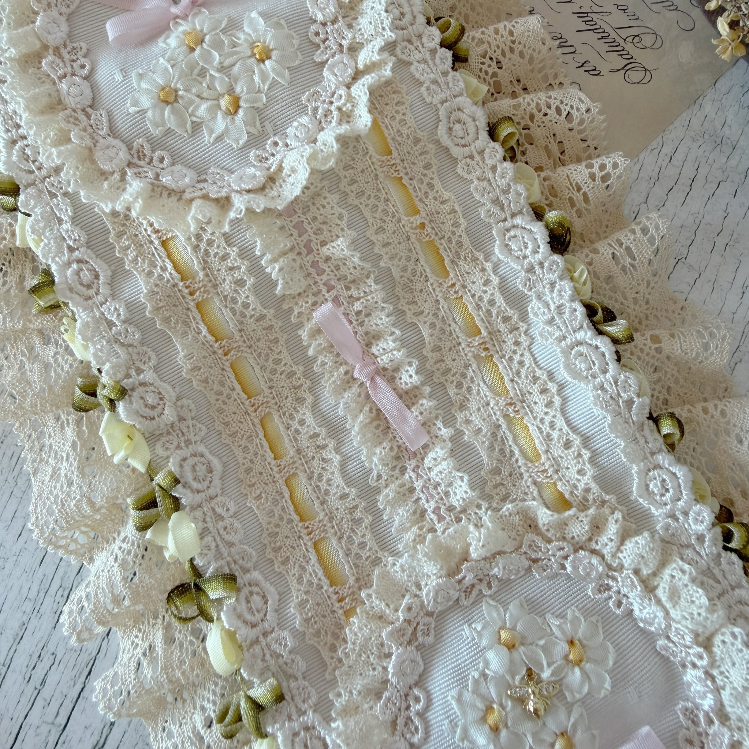 作品に使われているリボンや糸をひっかけないよう十分ご注意くださいませ。