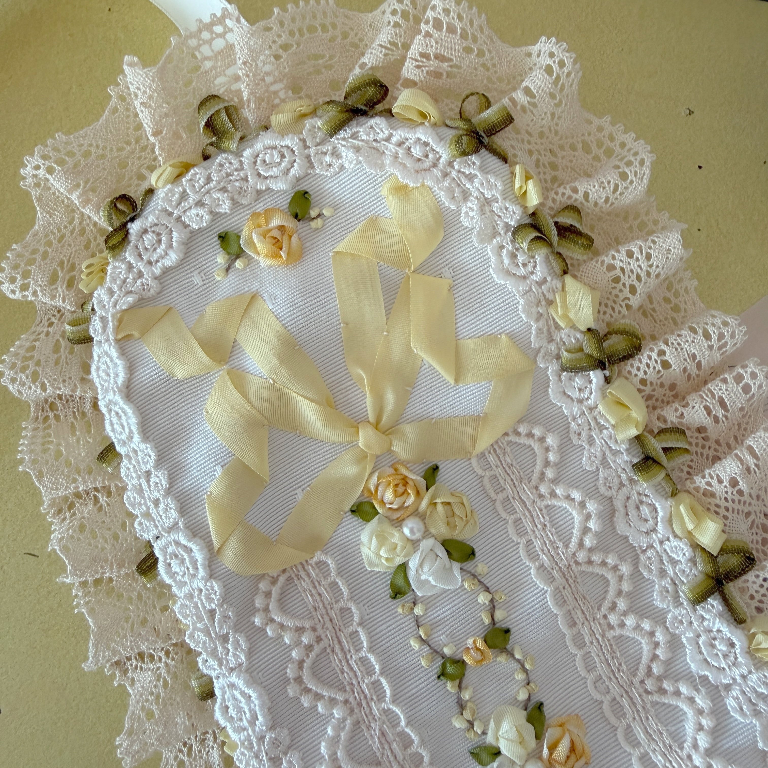 作品に使われているリボンや糸をひっかけないよう十分ご注意くださいませ。
